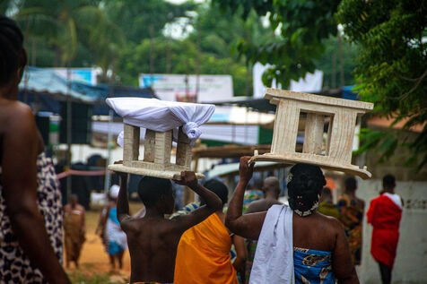 Au cœur de cette fête se trouve la prise de la pierre sacrée, appelée Kpessosso, un rituel d’une portée spirituelle capitale. Conservée dans la forêt sacrée des 41 divinités, cette pierre est extraite selon un protocole ancestral lors d’une cérémonie nocturne appelée Ave Fonfon, en présence des prêtres, notables et initiés. La couleur de la pierre révélée annonce le destin de l’année à venir : abondance, conflits, paix ou épreuves. Elle est un miroir tendu par les esprits aux vivants. Mais Epé-Ekpé n’est pas qu’une célébration symbolique : c’est un acte de cohésion sociale, un moment de rassemblement des fils et filles Guin venus du Togo, du Ghana, et de la diaspora. La cérémonie porte en elle des valeurs profondément enracinées : la solidarité, l’équilibre entre le masculin et le féminin, la place de l’invisible dans la régulation du visible.