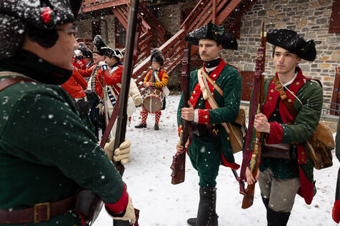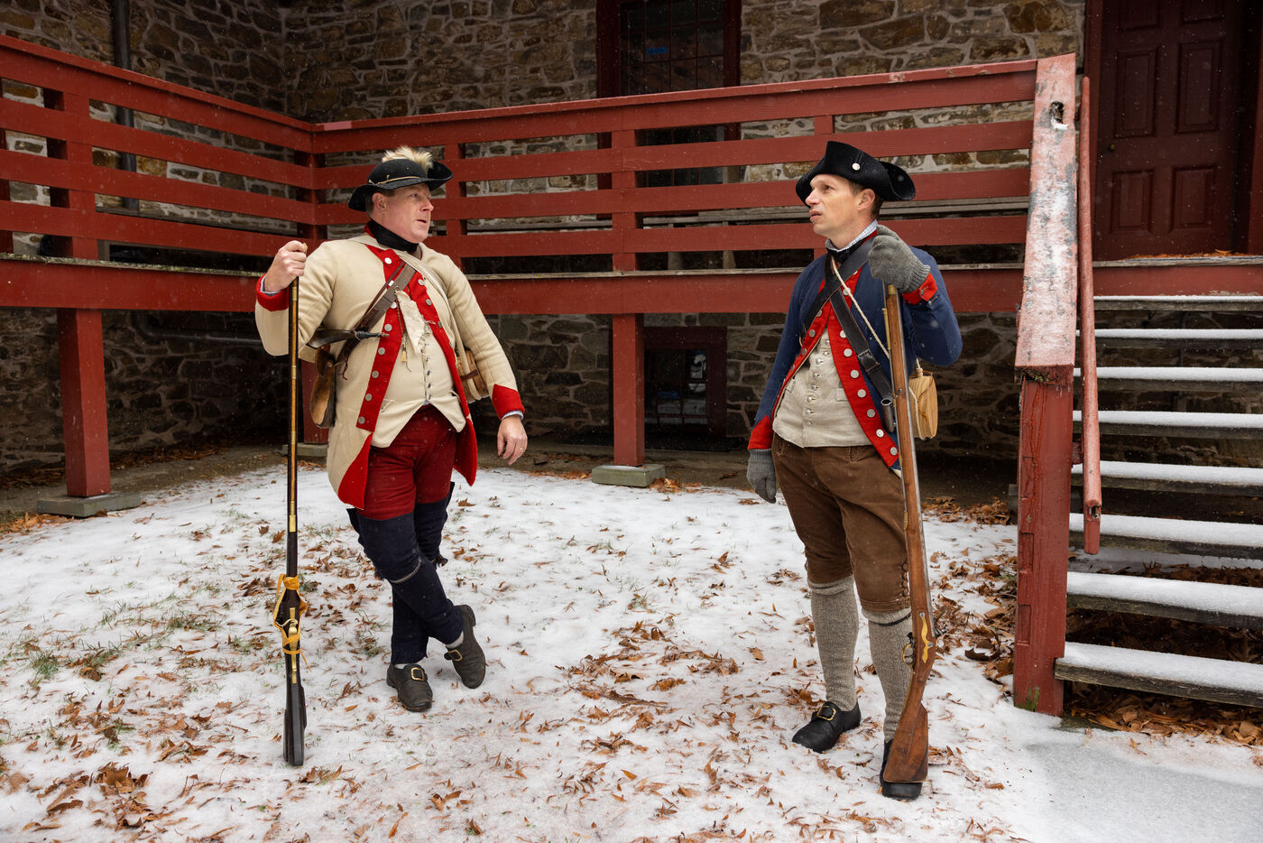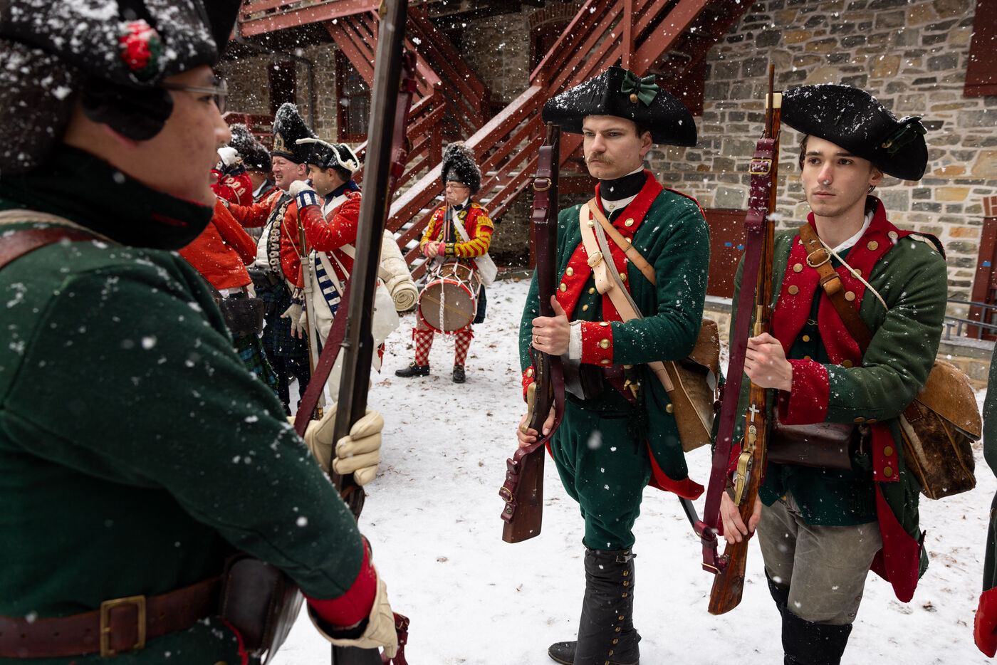 Couverture de la reconstitution de la bataille de Trenton, organisée par l'Old Barracks Museum, à Trenton, dans le New Jersey, aux États-Unis, à l'occasion de son 249e anniversaire, le 27 décembre 2025.