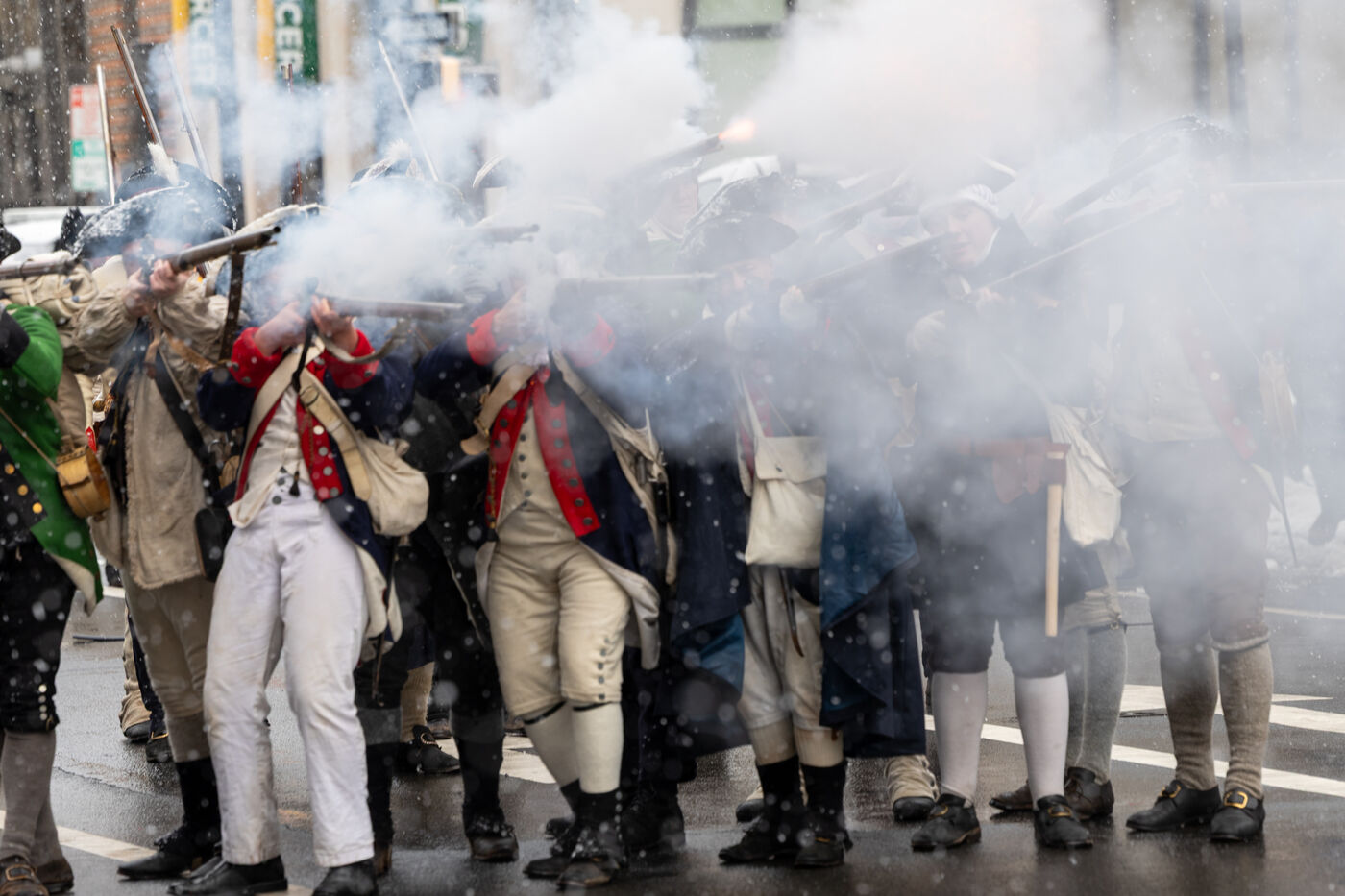 Coverage of the reenactment of the Battle of Trenton, organized by the Old Barracks Museum, in Trenton, New Jersey, United States, held for its 249th anniversary on December 27, 2025.