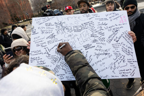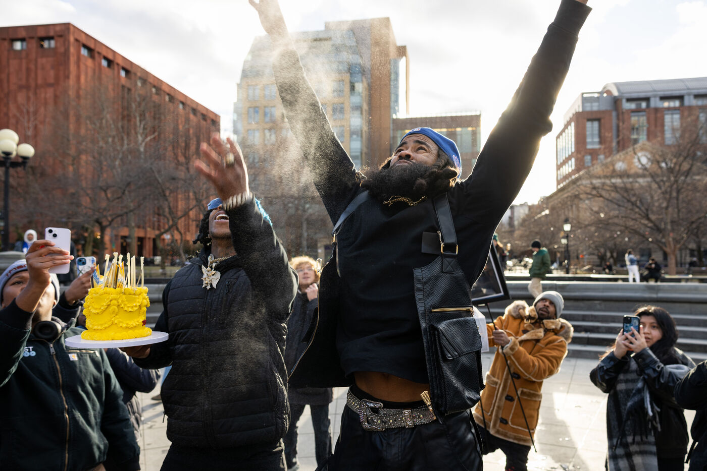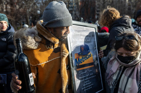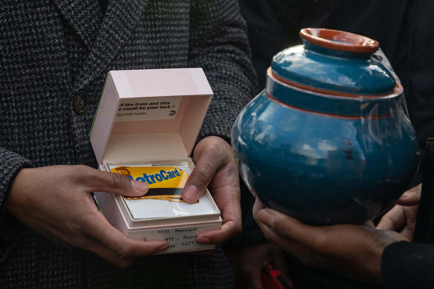 New Yorkers gathered in Washington Square Park for a memorial service organized by online creators Wafflekozik, Official KiingSpiider, and Dupre God to pay their respects and tribute to the MetroCard in New York City, NY, United States on December 30, 2025. The MetroCard, which had been the primary means of paying for public transportation in New York City, was announced to no longer be sold at the end of the 2025 and be replaced by the new OMNY card system.