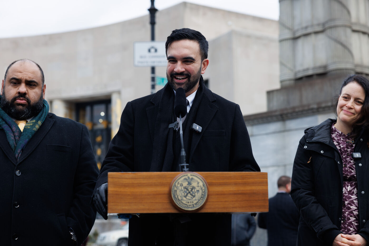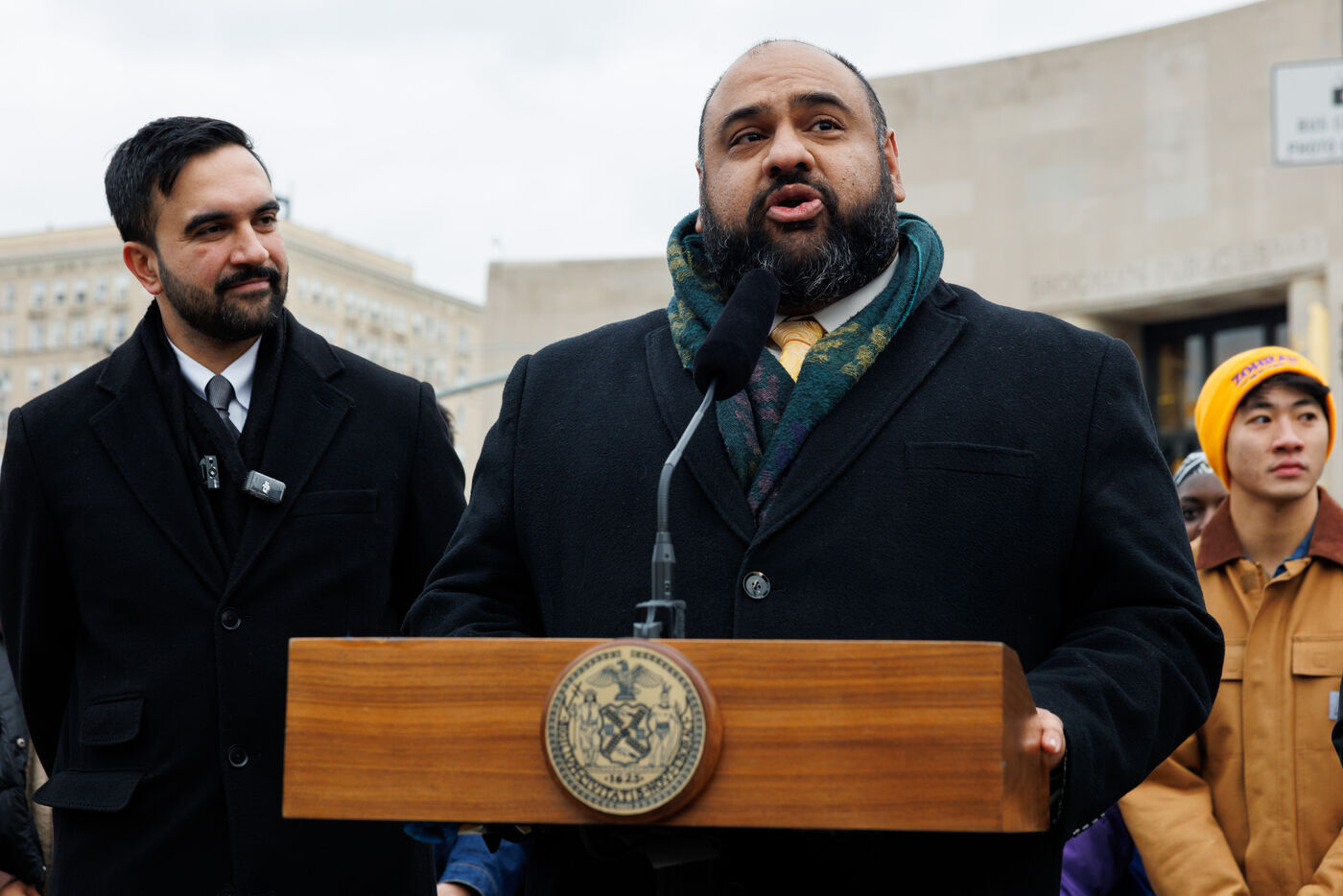 Mayor Zohran Mamdani held a press conference at Grand Army Plaza in New York City, New York, United States on January 2, 2026. Mayor Mamdani announced the creation the Office of Mass Engagement appointed, naming Tascha Van Auken to lead the office, and appointed Ali Najmi as Chair of Mayor’s Advisory Committee on the Judiciary.