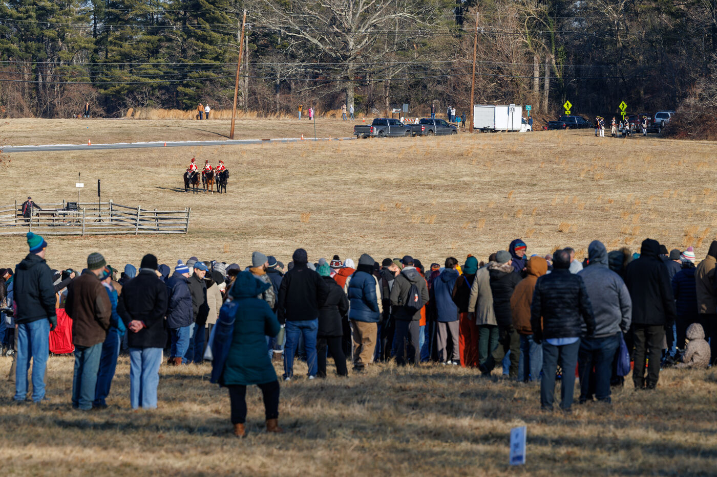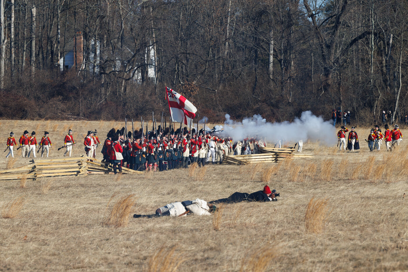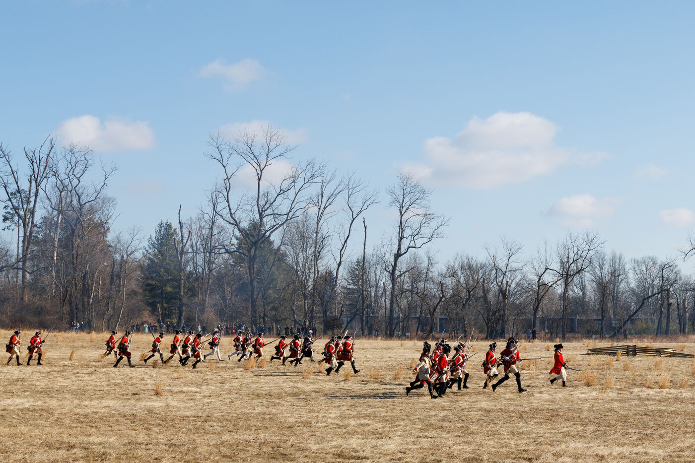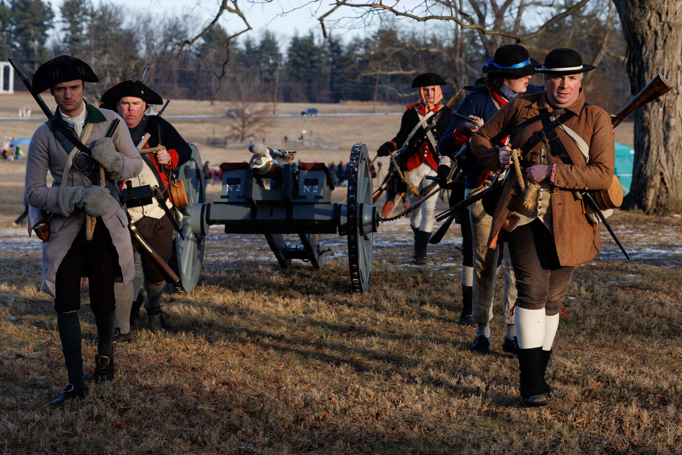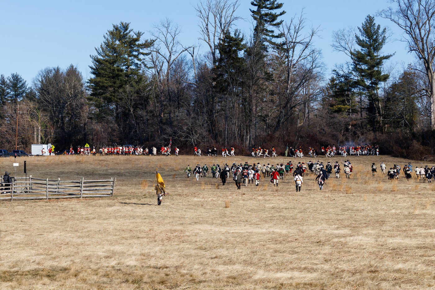 Thousands gathered at Princeton Battlefield State Park in Princeton, New Jersey, United States to watch a reenactment of the Battle of Princeton, organized by the Princeton Battle Society, on January 4, 2026. The reenactment was held for the battle's 249th anniversary, originally fought between the Continental Army and British forces on January 3, 1977.