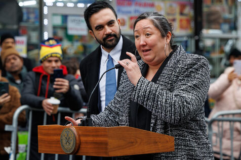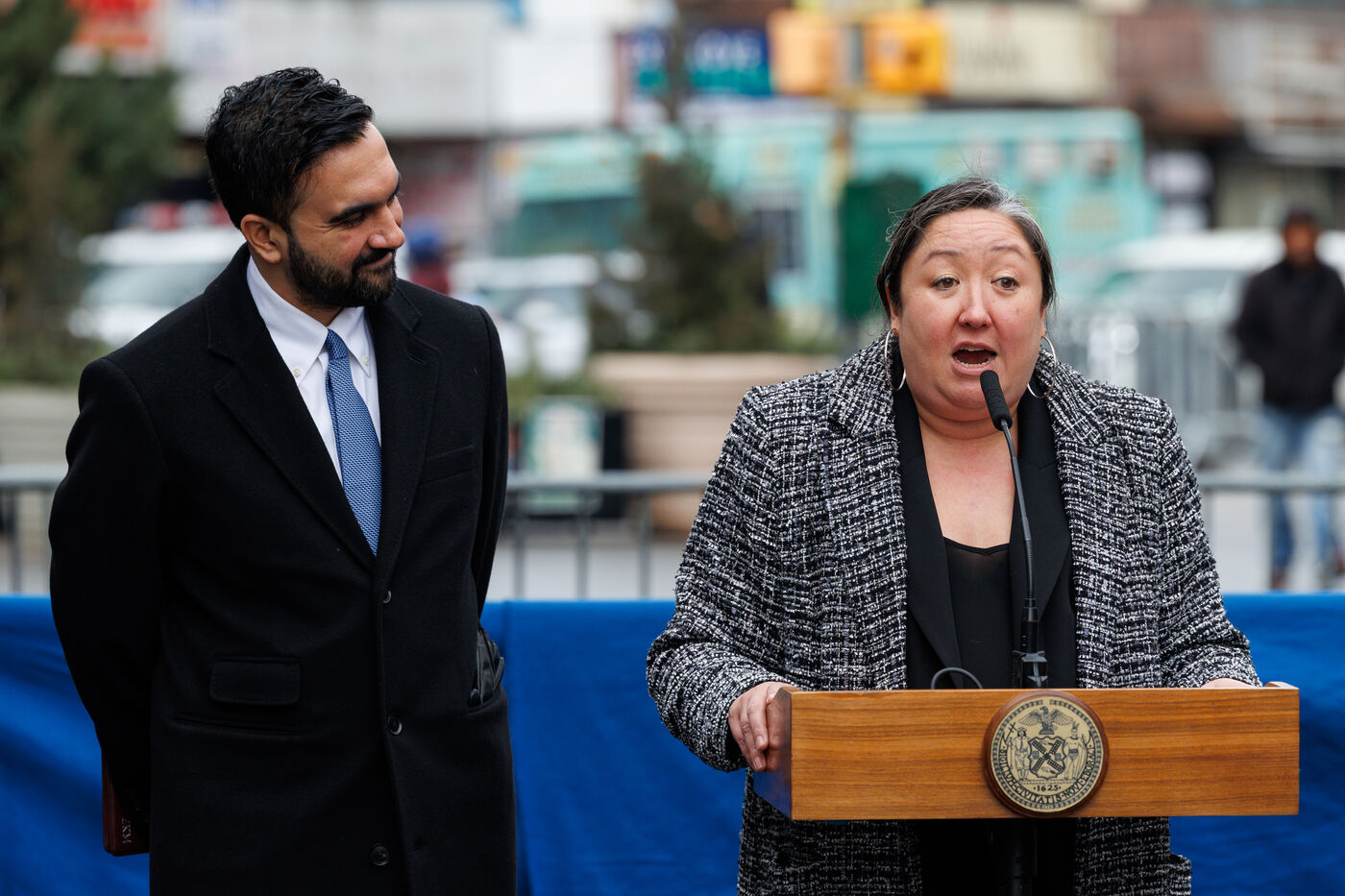 Mayor Zohran Mamdani announces the appointment of Christine Clarke as chair and commissioner for the City Commission on Human Rights at Diversity Plaza in Jackson Heights, Queens in New York City, New York, United States on January 7, 2026.