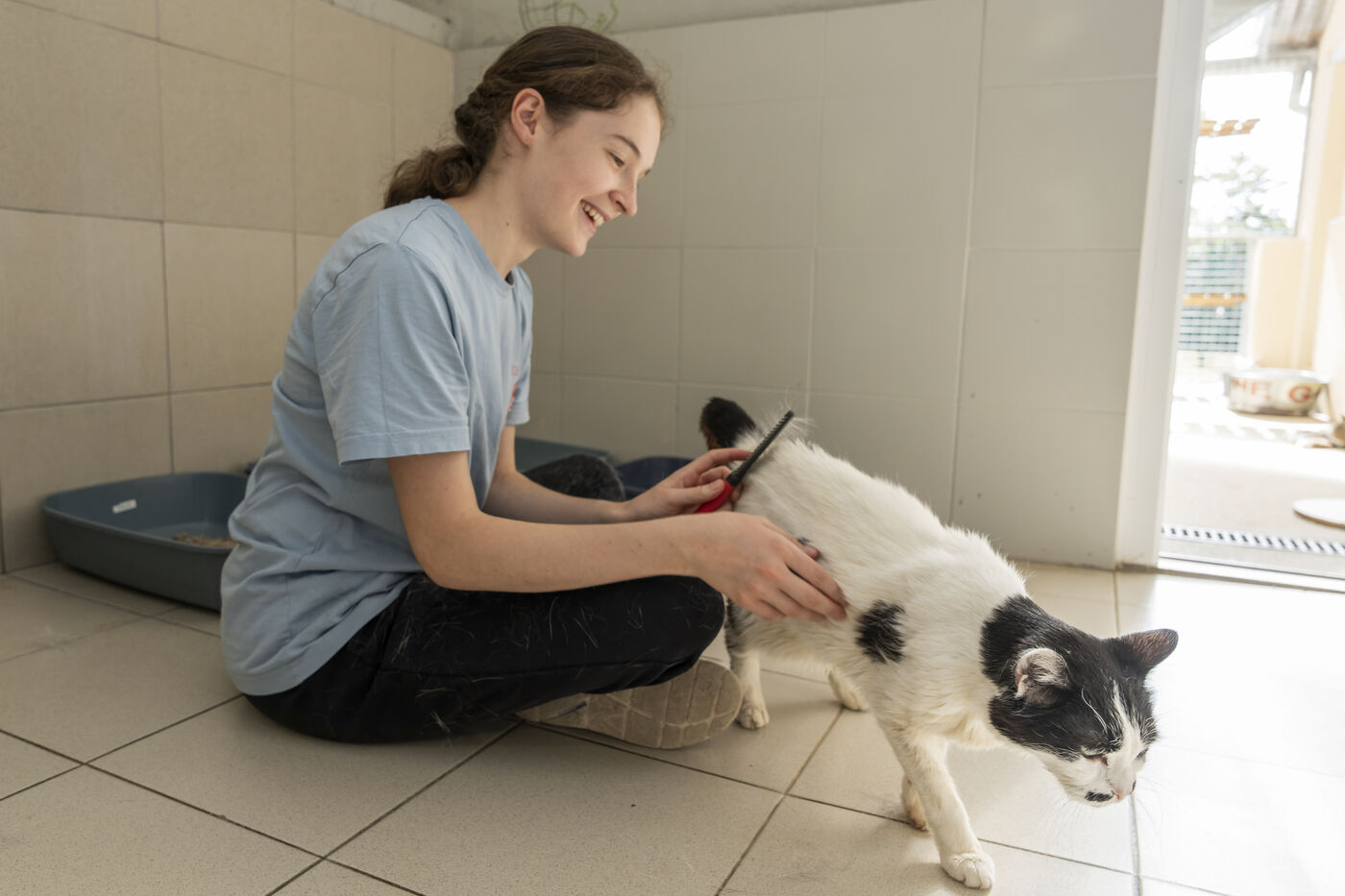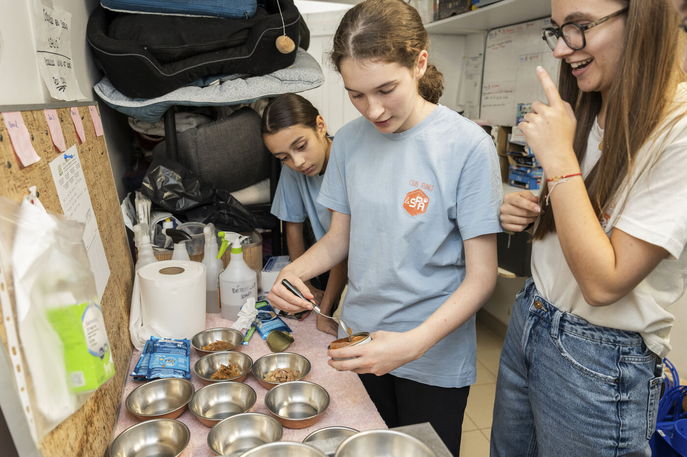 In SPA shelters, teenagers volunteer to take care of abandoned animals. They feed them, walk them, clean their cages, and give them affection. This experience allows them to discover life in the shelter, feel useful, and share their love for animals while learning patience and responsibility.