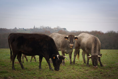 "The Bazadaise is like the Bazadais: it has character," smiles Pierre-Julien. Dressed in a gray coat, the Bazadaise is known for its hardiness, its resistance and the quality of its tasty, tender, marbled meat. A show rider with some thirty horses for leisure, Pierre-Julien has always had a passion for animals and dreamed of becoming a breeder, much to [his] wife's chagrin". So when the farm next door to his childhood home, where was a boy [he would] fetch the milk directly from the cow's udder", went up for sale, his dream became a reality. "The emblematic breed here is the Bazadaise, so I couldn't see myself breeding any other breed. Being a breeder is a passionate choice, not a legacy. The only thing that motivates me is to produce a high-quality product, and that won't come at the expense of profitability", says the man who breeds his ruminants like a vintage wine. "It would never occur to anyone to buy a bottle of wine without a label. I want those who eat my meat to know its sex, where it comes from, how it was raised, what it ate and how long it was fattened."