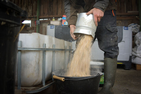 À leur retour à Auros, les génisses vont à la reproduction, et les boeufs retrouvent l'étable pour y être engraissés. « La finition dure dix mois pour les Bazadaises et 18 mois pour les Wagyus », précise Pierre-Julien qui, en devenant éleveur bovin, s?est découvert une passion pour l'alimentation et l'engraissement de ses animaux. « J'ai conçu une base de nutrition avec l'aide d'une nutritionniste, puis je l?ai faite évoluer au fil de mes rencontres avec des éleveurs de Wagyus. J'apporte beaucoup d'importance à la rigueur alimentaire, comme les athlètes ou les pâtissiers. Une mesure est une mesure. Nous pesons tous les ingrédients de la ration pour obtenir une ration quotidienne précise, distribuée à la mesure près. L'excellence est un ensemble de détails qui ne se voient pas forcément au premier coup d'oeil. » La portion journalière des boeufs va ainsi augmenter progressivement pour passer du 100 % herbe Mayennaise aux 100 % céréales Girondines.