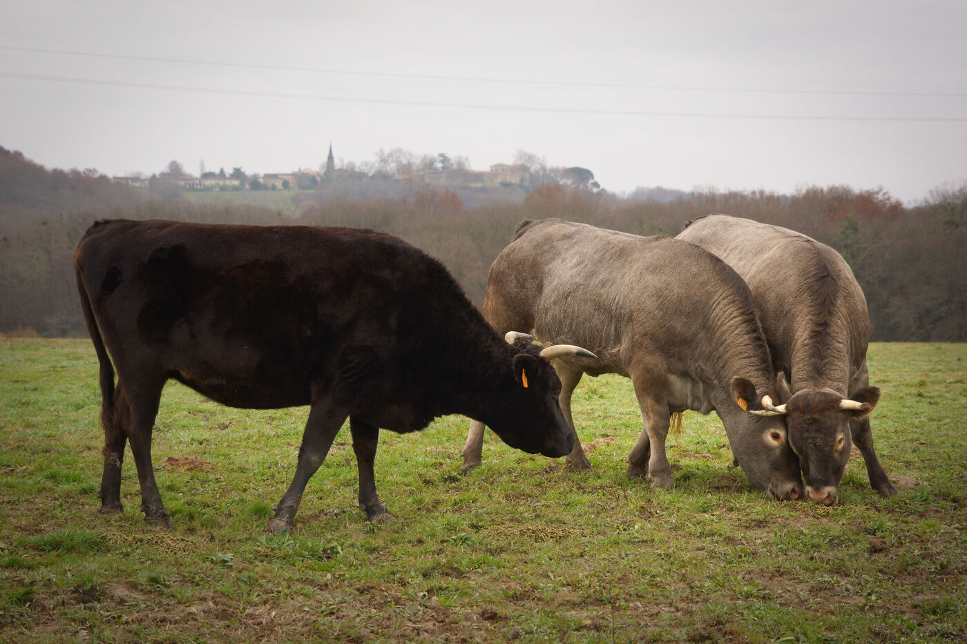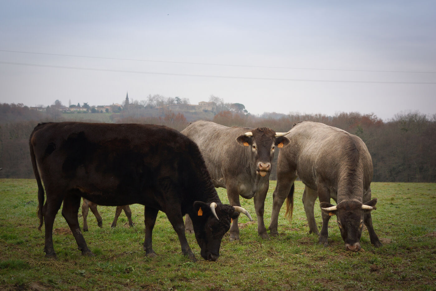 In Auros, Gironde, Pierre-Julien Allard takes great care of his herd of Bazadaise cattle. Raised like a grand cru, the steers and heifers gorge themselves on meticulously prepared cereal rations and drink two glasses of Sauternes must a day.