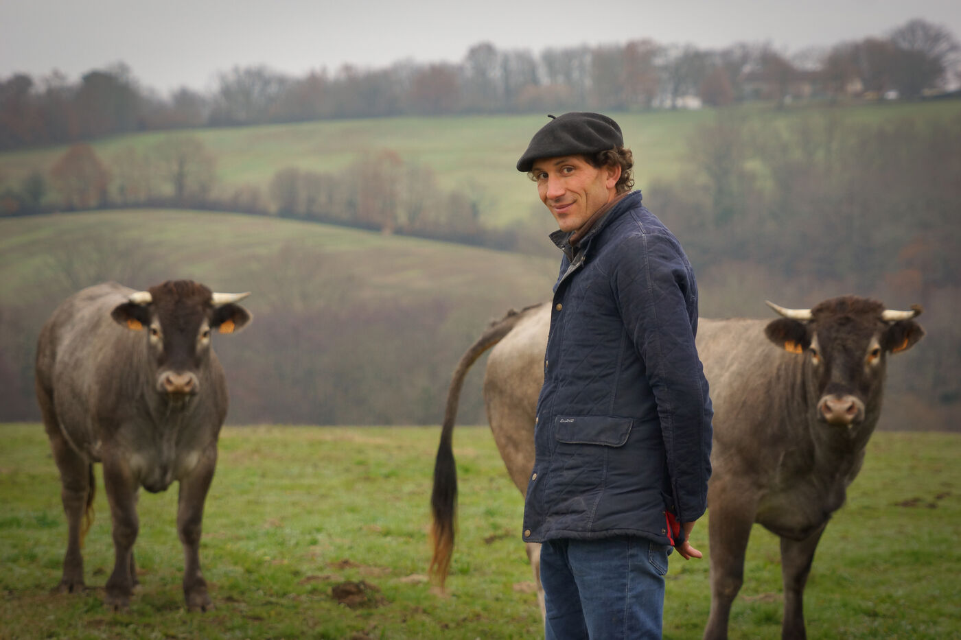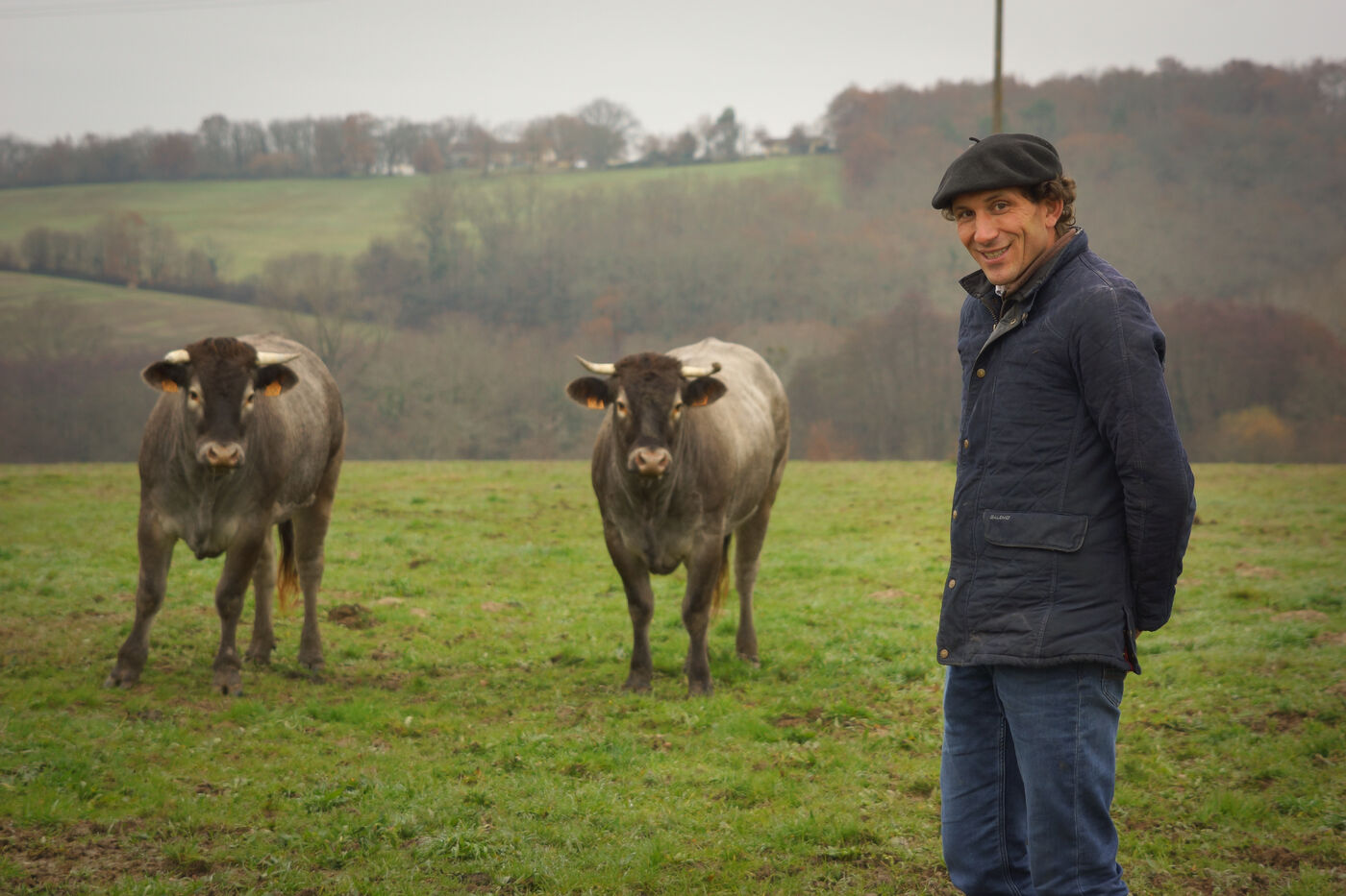 « La Bazadaise est comme le Bazadais, elle a du caractère », sourit Pierre-Julien. Vêtue d'une robe grise, la Bazadaise est connue pour sa rusticité, sa résistance et la qualité de sa viande goûteuse, tendre et persillée. Cavalier de concours avec un trentaine de chevaux pour le loisir, Pierre-Julien a toujours été passionné par les animaux et rêvait d'être éleveur « au grand dam de [sa] femme ». Alors quand la ferme voisine de son enfance, où « petit [il allait] chercher le lait directement au pis de la vache », se retrouve à la vente, son rêve devient réalité. « La race emblématique d'ici étant la Bazadaise, je ne me voyais pas élever une autre race. Être éleveur est un choix passionnel, pas un héritage. La seule chose qui m'anime, c'est de faire un produit de grande qualité, et cela ne passera pas au détriment de la rentabilité », pose celui qui élève ses ruminantes comme un grand cru. « Cela ne viendrait à l'idée de personne d'acheter une bouteille de vin sans étiquette. Je veux que ceux qui consomment ma viande sachent son sexe, d'où elle vient, comment elle a été élevée, ce qu'elle a mangé et combien de temps elle a été engraissée. »