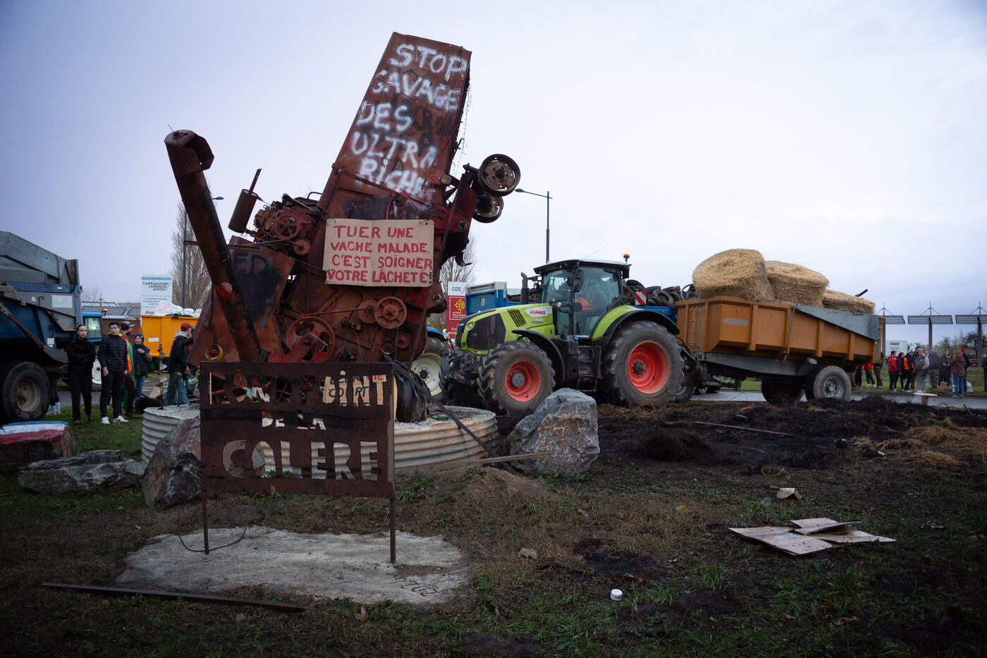 Mobilisation des agriculteurs et éleveurs, et des différents syndicats agricoles, sur les ronds points et péages autoroute du département au sujet de la dermatose nodulaire contagieuses bovine.