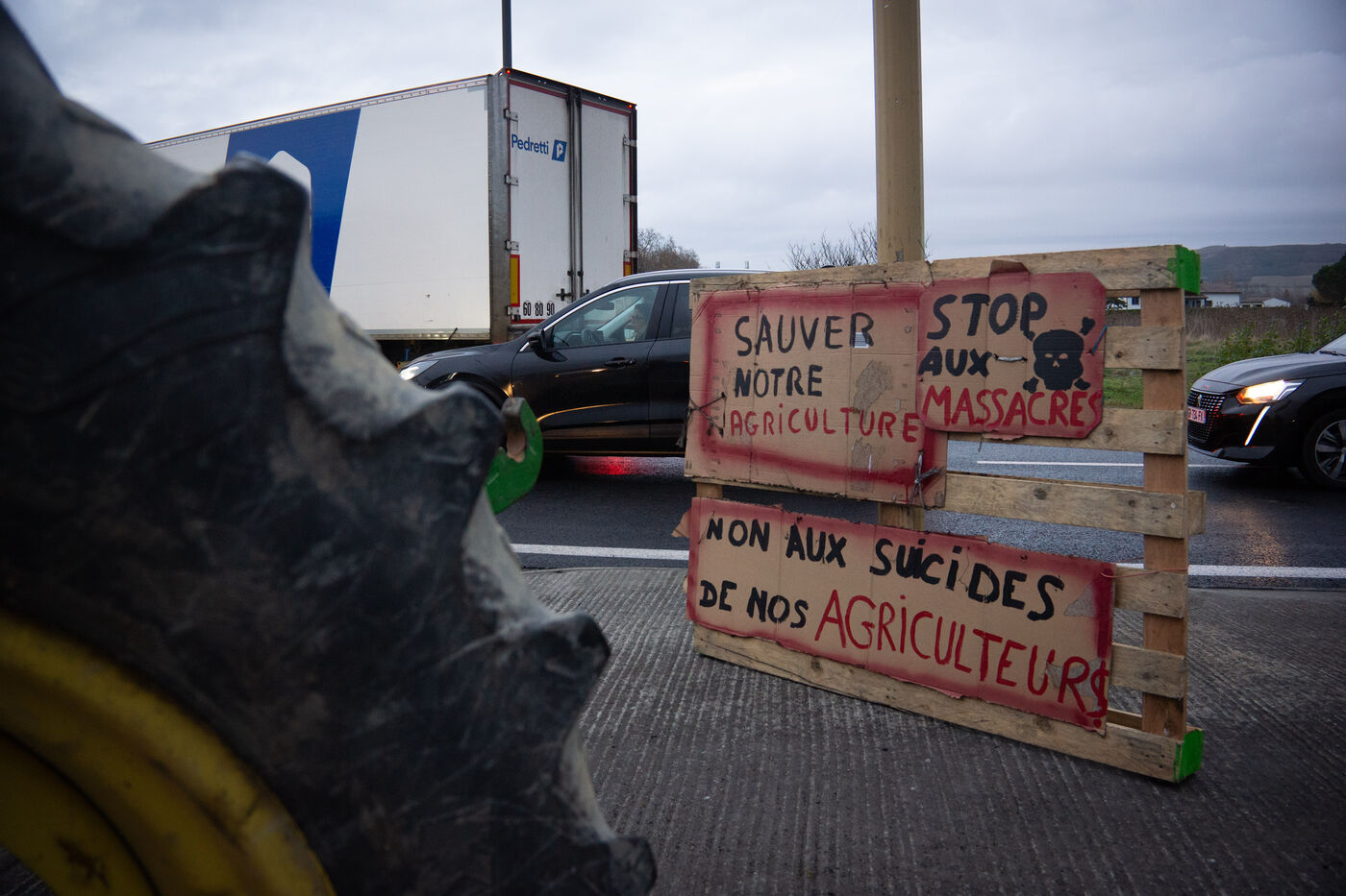 Mobilisation of farmers and livestock breeders, and various agricultural unions, at roundabouts and motorway toll booths across the department to protest against contagious bovine nodular dermatitis.