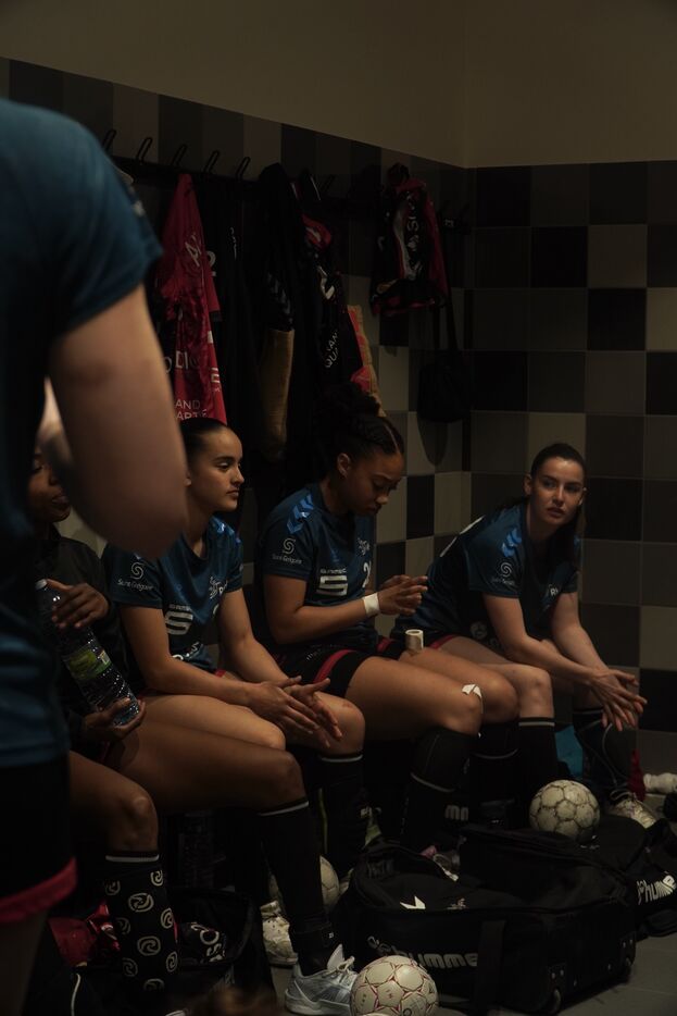 Cesson-Sévigné, Saturday April 5, 2025. Before the game, there is another game. The one played in the locker room of Glaz Arena. The women's D2 team of Saint-Grégoire have a 4pm appointment. Missing the call is not an option. Tonight, it's Bègles. Last massages, last stretches, laughter, a few songs. Then silence. Focus. Final score: VICTORY.