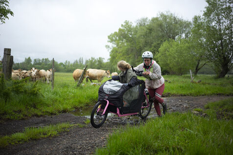 Road movie and bikepacking with the "De Malleray" family. Felix, Cécile, Zélie, Suzie the youngest and the dog Lady are getting ready to cross the Auvergne on cargot bikes, in complete autonomy.