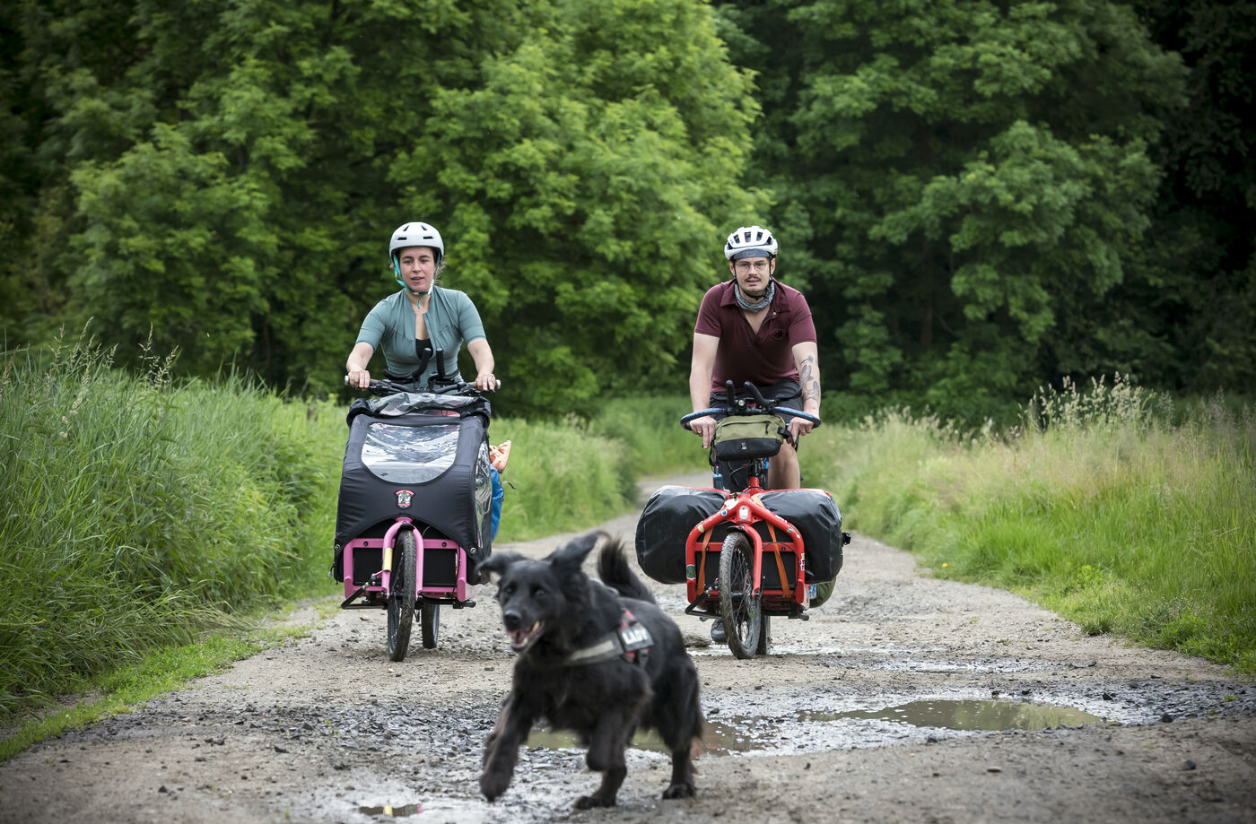Road movie et bikepacking familliale chez les "De Malleray". Felix, Cécile, Zélie, Suzie la petite dernière et le chien Lady se préparent à traverser l'Auvergne en vélos cargos et en autonomie complète.