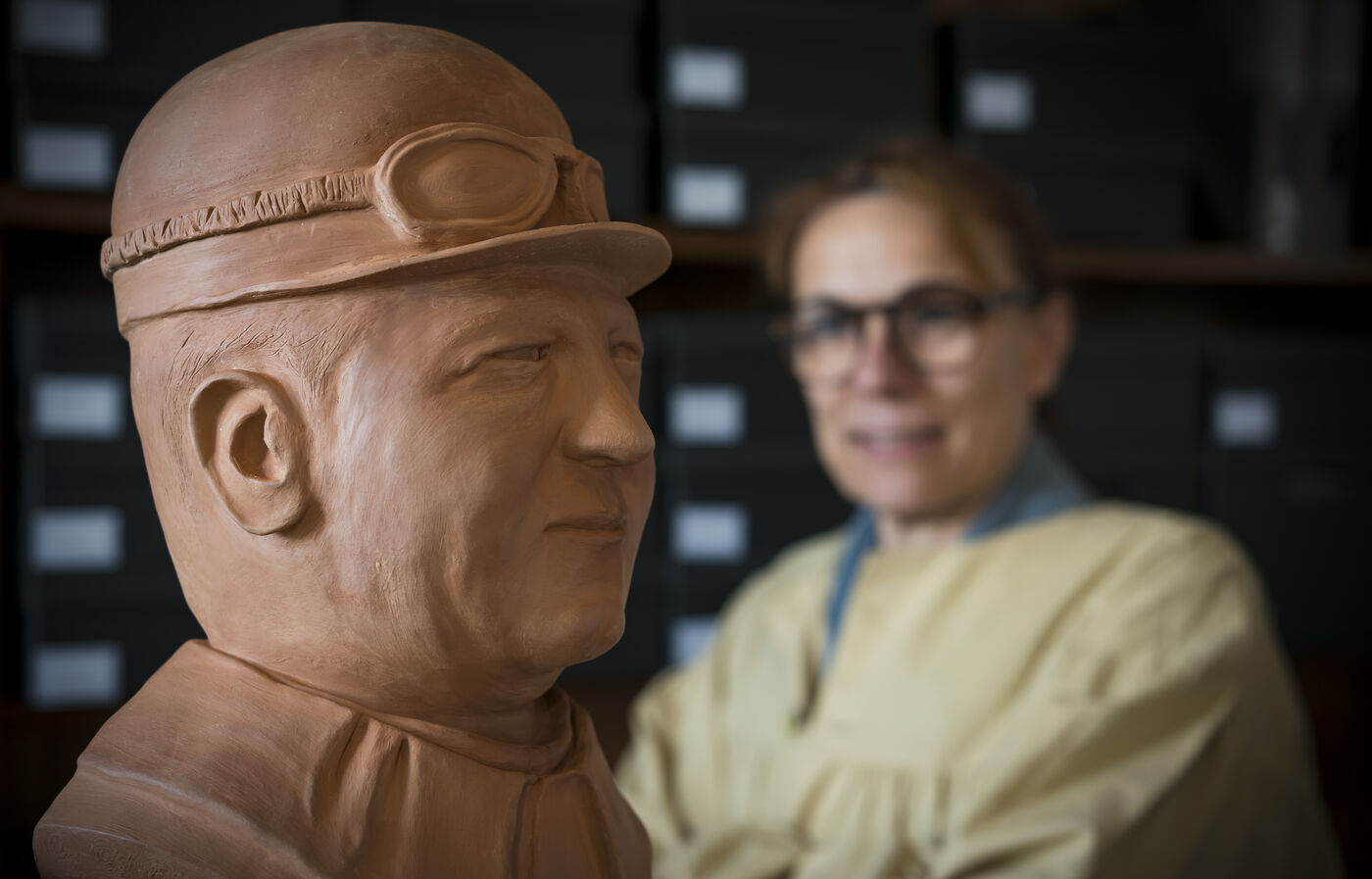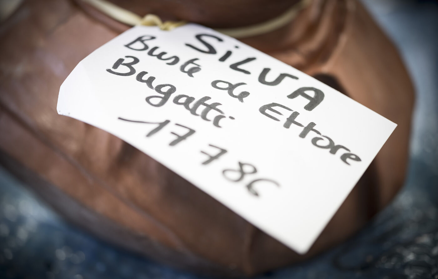 Réalisation d'un buste d'Ettore Bugatti en argile et bronze par l'artiste Christine SILVA.