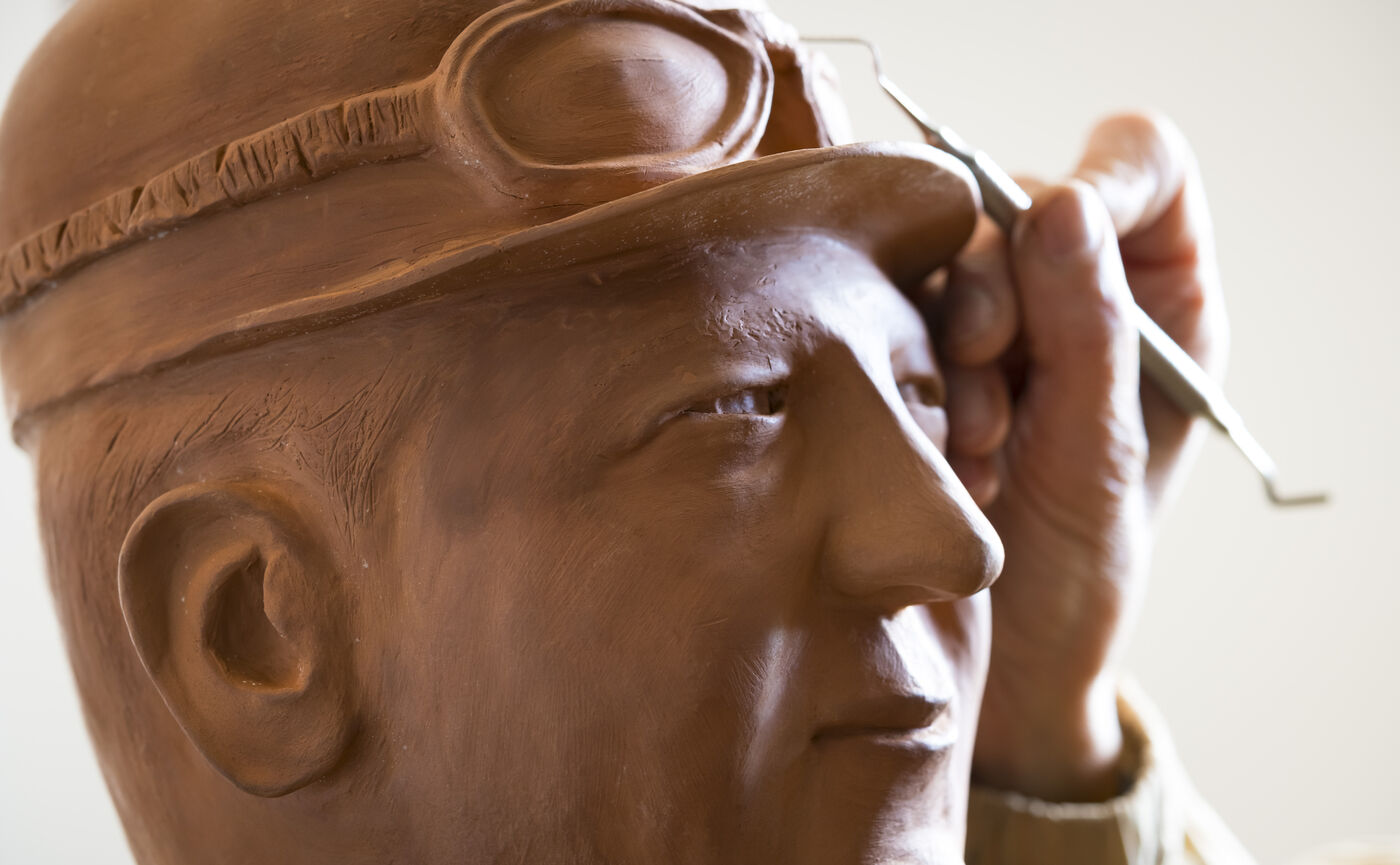 Creation of a bust of Ettore Bugatti in clay and bronze by artist Christine Silva.