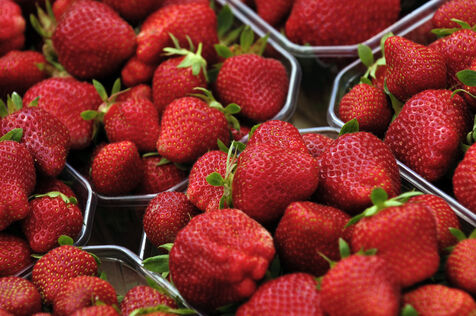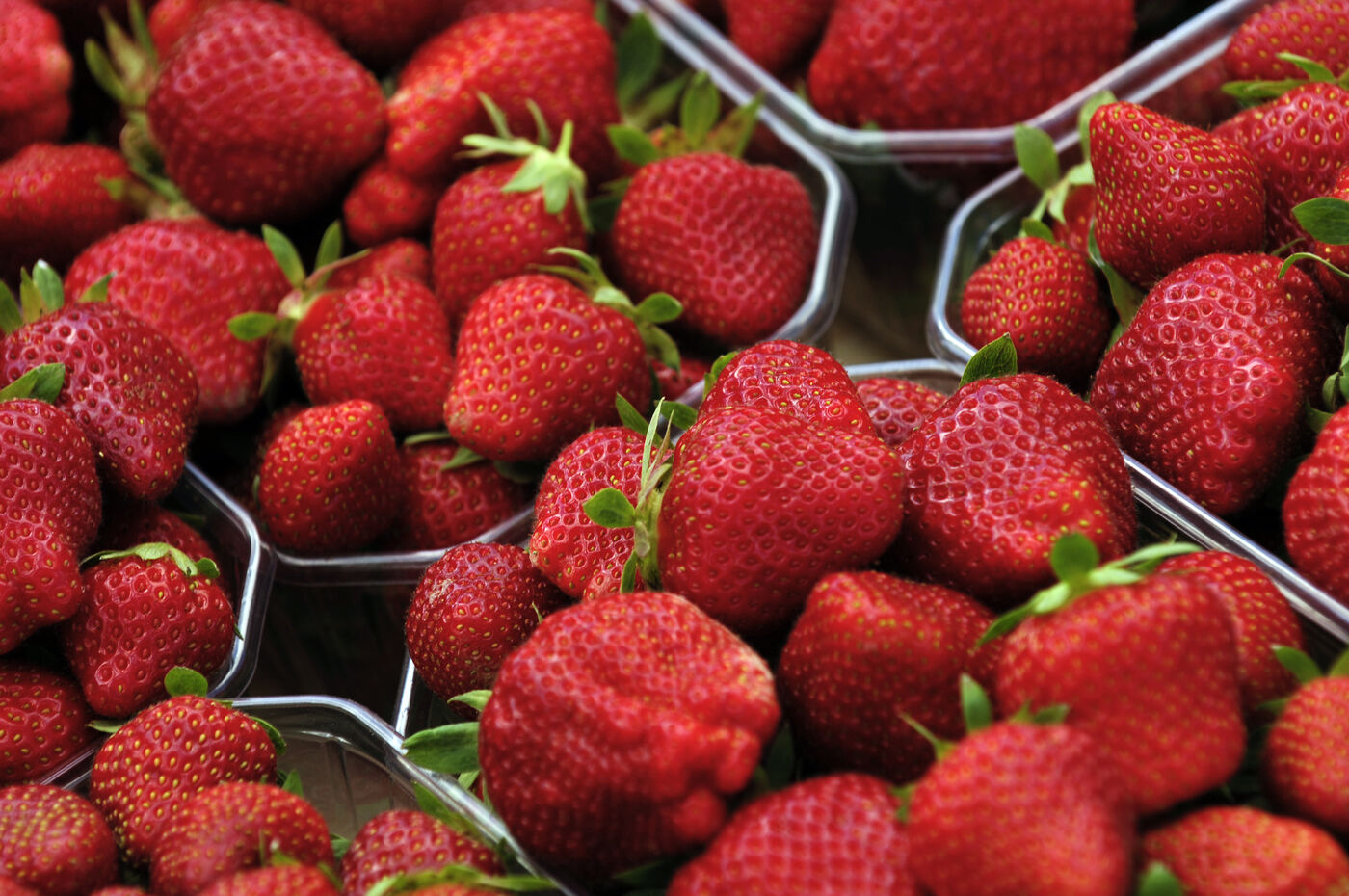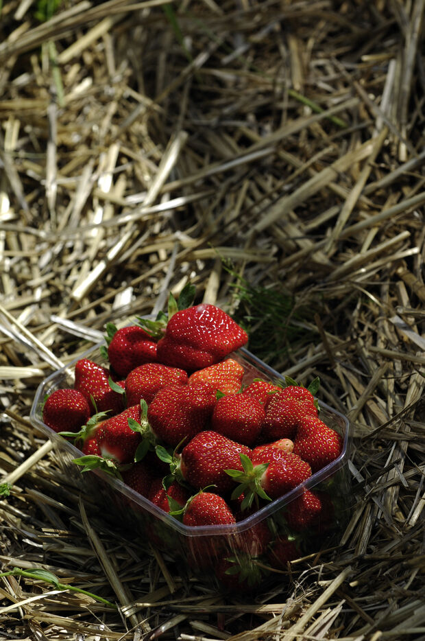 Récolte de fraises remontantes en pleine terre.
