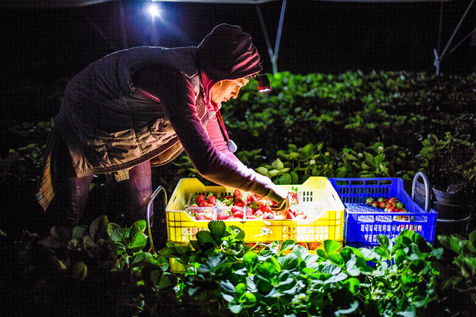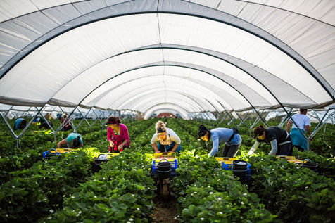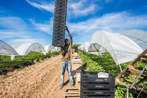 Every year, 300,000 tons of strawberries are produced there, mainly Camorosa plants, a variety created in a laboratory in California. Planted in November, Huelva farmers harvest strawberries continuously for 4 to 6 months, from January to June. In order to harvest their fruit, the Andalusian producers call upon nearly 100,000 seasonal workers, mostly women, mostly from Eastern Europe and the Maghreb, every year. By day under the hot Andalusian sun or by night, their workers work for 37€/day, 7 days/week for 4 to 6 months. Although difficult, this work is nevertheless better paid than what the labour market offers in their country of origin and it is for this reason that the seasonal workers come back year after year, for more than 10 years for some of them...