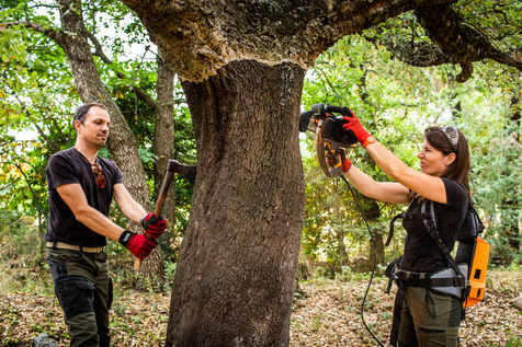 Montesquieu des Albères, summer 2021, training organized by the Mediterranean Institute of the Cork and Diam Bouchage (producer of cork stopper) on the mechanized lifting of cork.