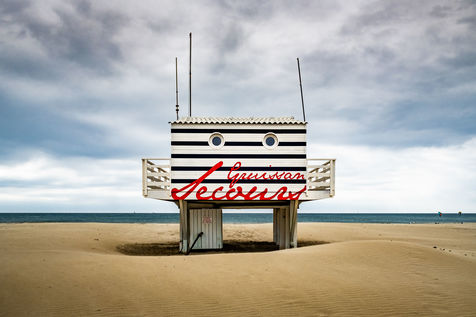 May 2022, Chalets de Gruissan. Beach of the commune of Gruissan, known for its chalets and made famous by the film 37°2 in the morning.