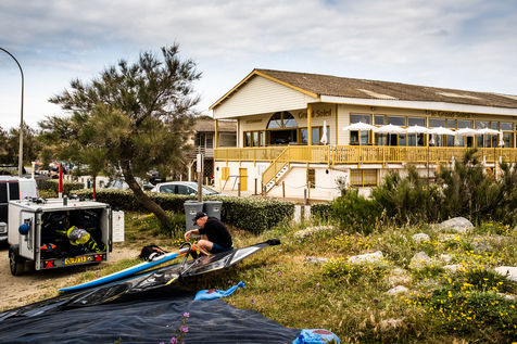 Wooden houses, on stilts and cabins of audois cohabiting with a high site of kitesurf and windsurf.