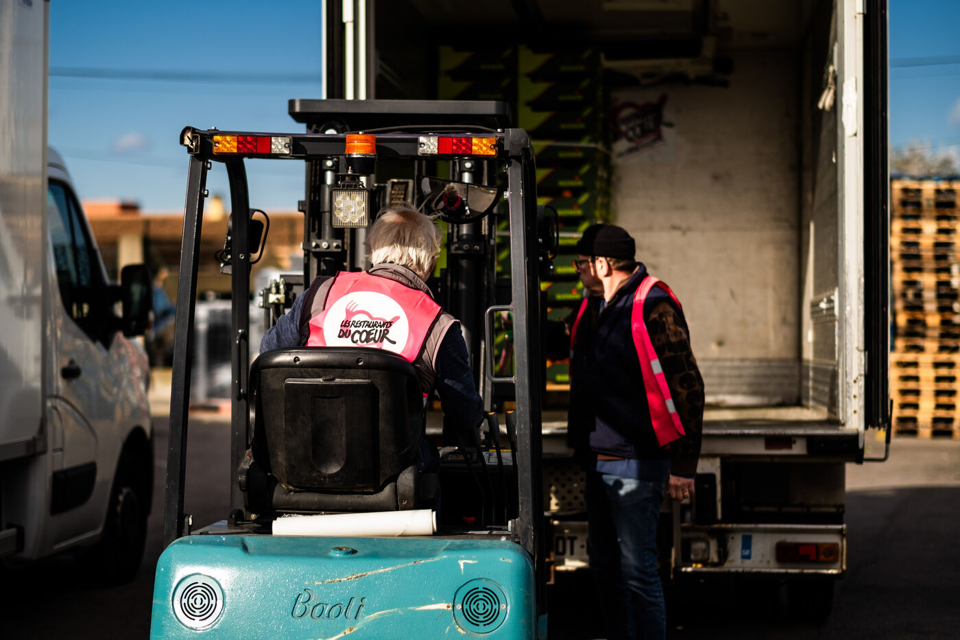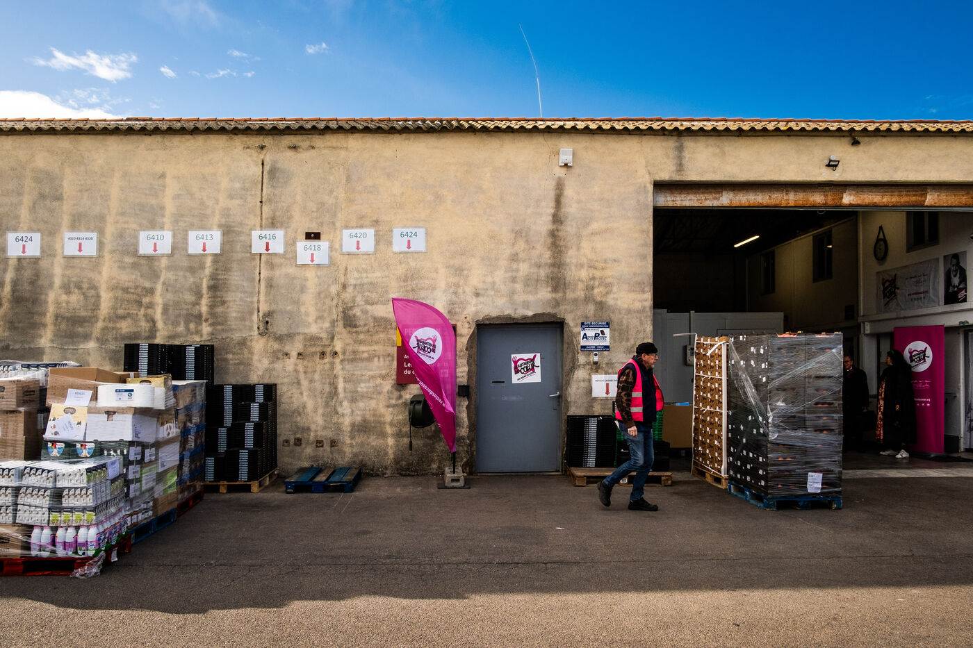Perpignan, 23 février 2024, à quelques jours de sa collecte annuelle nationale, les Restaurants du Coeur des Pyrénées-Orientales préparent, depuis leur centre de stockage, leur distribution bi hebdomadaire. Visite d'un centre de réception, stockage et distribution de l'association venant en aide aux plus démunis...