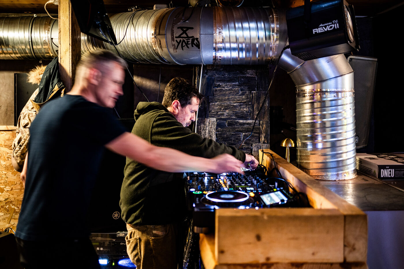 Les Angles, 11 janvier 2025, 12eme edition de GaroSnow, festival de musique electro dans la station de ski des Angles (66) avec DJ mixant dans les bars du village et dans la salle de concert en fin de journee. Avec des DJ dont Esteban, Mosimann et de nombreux autres musicien.