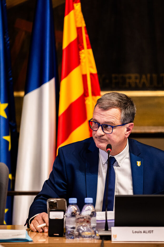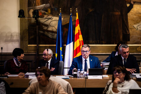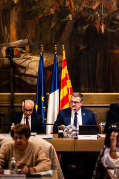 Perpignan, February 13, 2025, 2nd town council of the year, chaired by Louis Aliot, Rassemblement National mayor of the town of over 120,000 inhabitants.