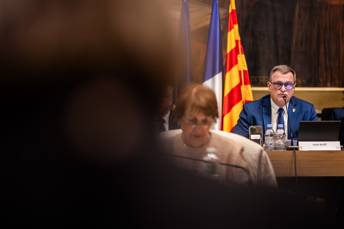 Perpignan, 13 fevrier 2025, 2eme conseil municipal de l'année, présidé par Louis Aliot, maire Rassemblement National de la commune de plus de 120 000 habitants.