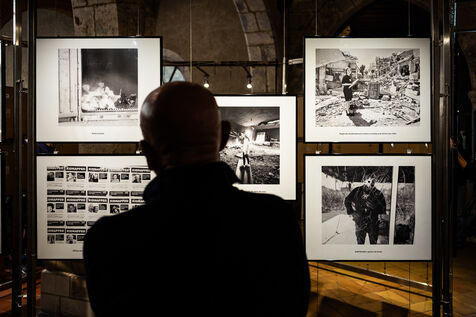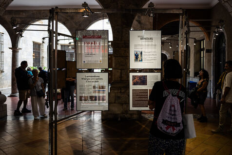 Perpignan, August 29, 2025. Taking advantage of the launch of the 37th edition of the Visa pour l'Image international photojournalism festival, the Perpignan city council, led by its mayor, vice-president of the RN (Rassemblement National), is presenting an exhibition—outside the festival—in the courtyard of City Hall on the massacres of October 7, 2023, in Israel.