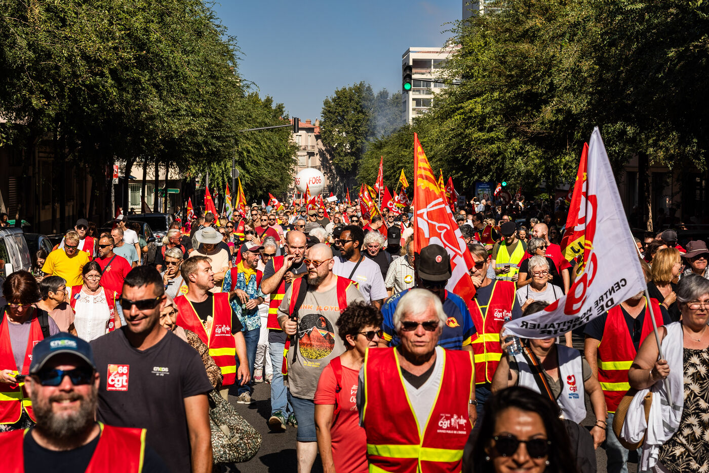 Perpignan, 18 septembre 2025, manifestation à l'appel de l'intersyndicale pour plus de justice sociale, contre le budget et l'austérité annoncés par le gouvernement. Une rentrée sociale faisant suite à la colère populaire du mouvement "Bloquons Tout le 10 septembre".