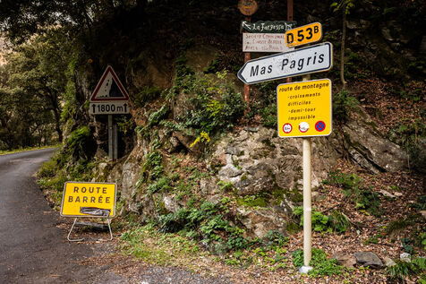 11 novembre 2025, Mas Pagris, Amelie-Les-Bains. Depuis le 9 novembre 2024 soit depuis plus d'un an, et l'effondrement de la route d'accès au petit hameau de 30 âmes situé a 15mn d'Amelie-Les -Bains, la vie calme de ses habitants a été transformée en calvaire.