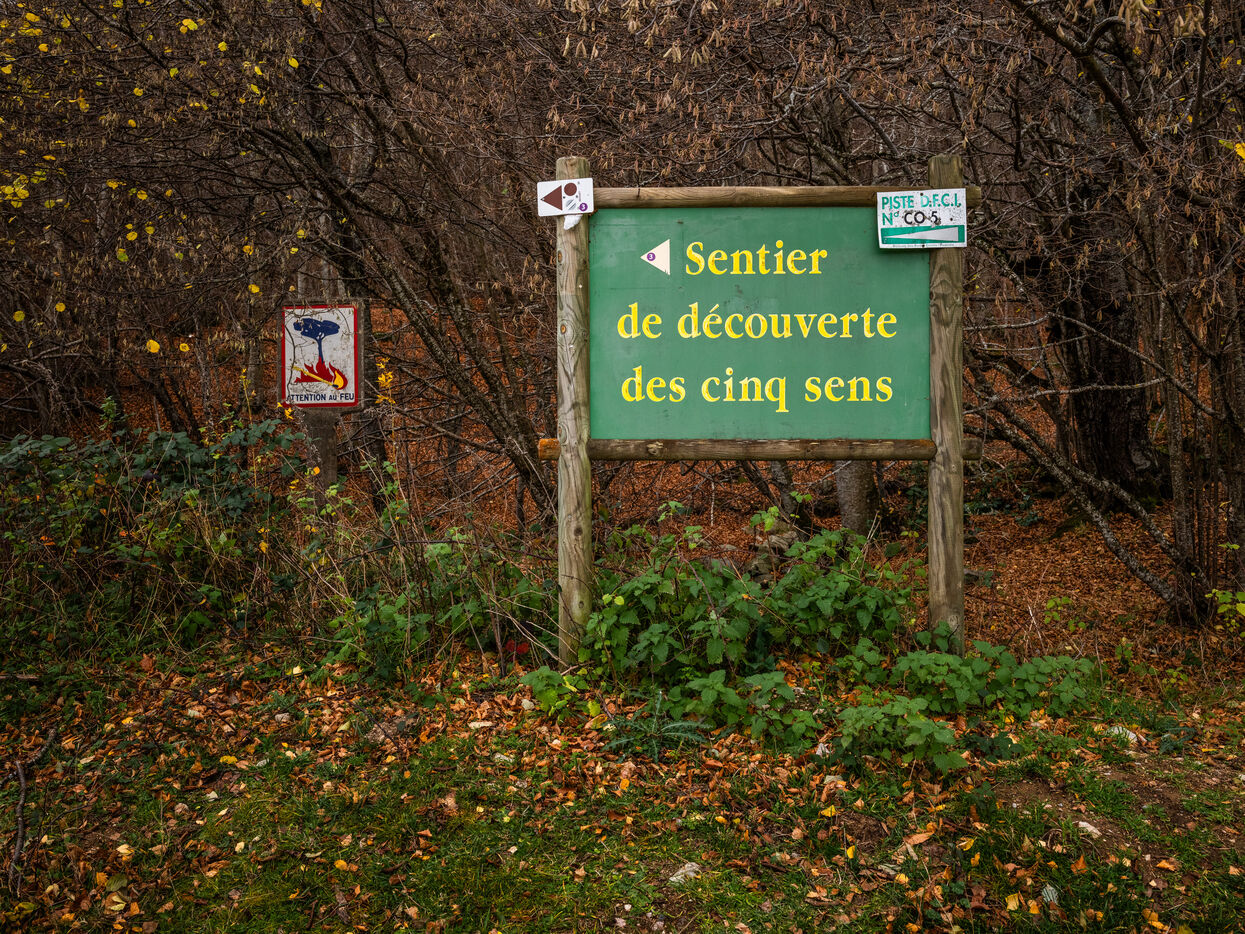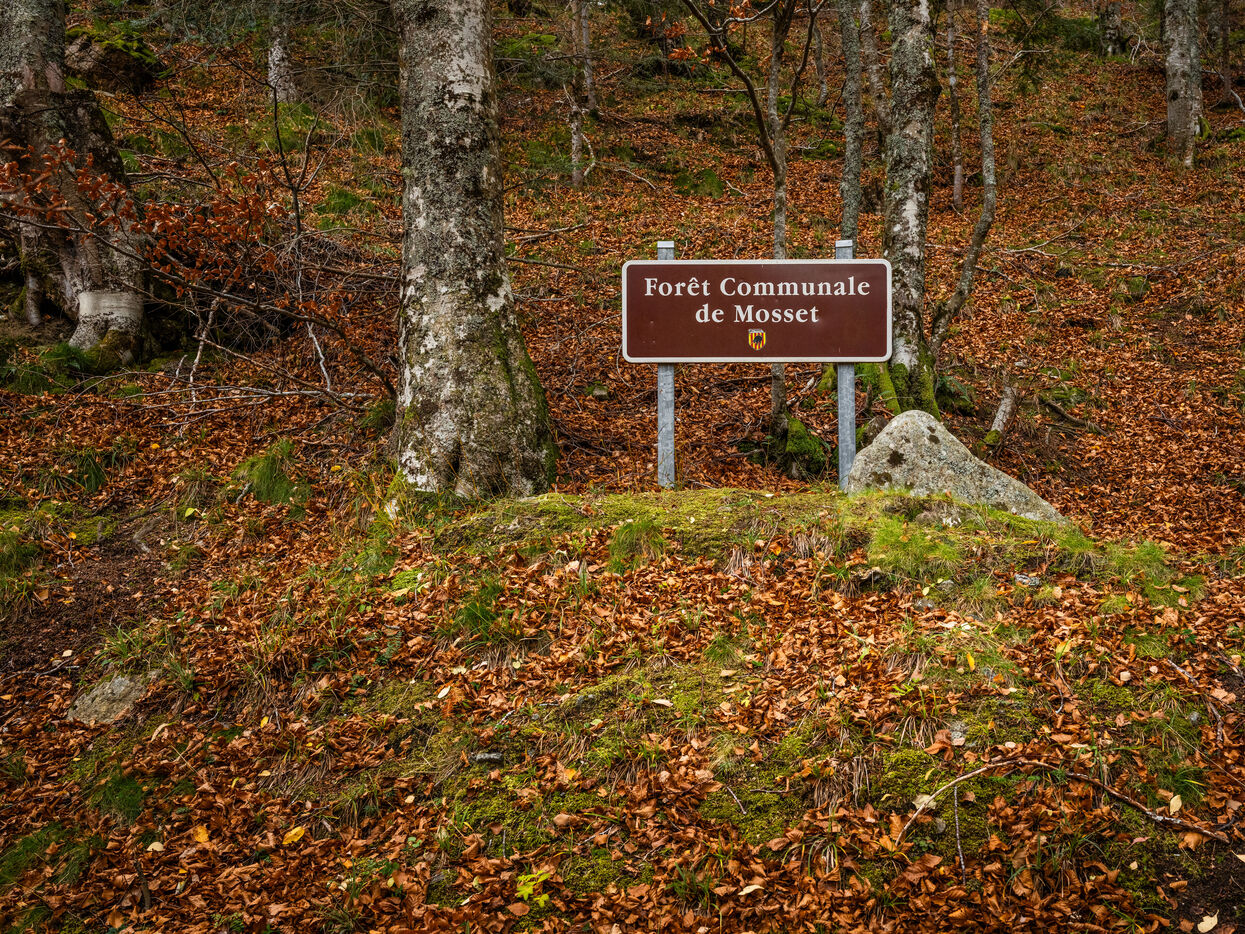 Mosset, 16 novembre 2025, Randonnée en Conflent sur le sentier de découverte des 5 sens de la forêt communale de Mosset, le long du Còrrec de Canrec et ses chutes d'eau, en sous-bois, marqué par la saison automnale, entre hetraie et pinede.