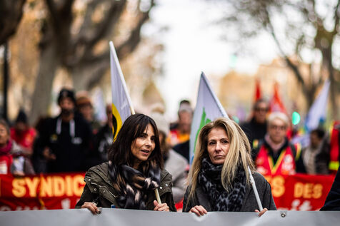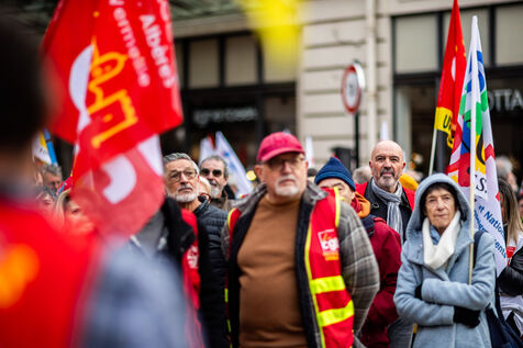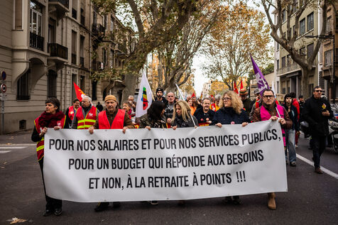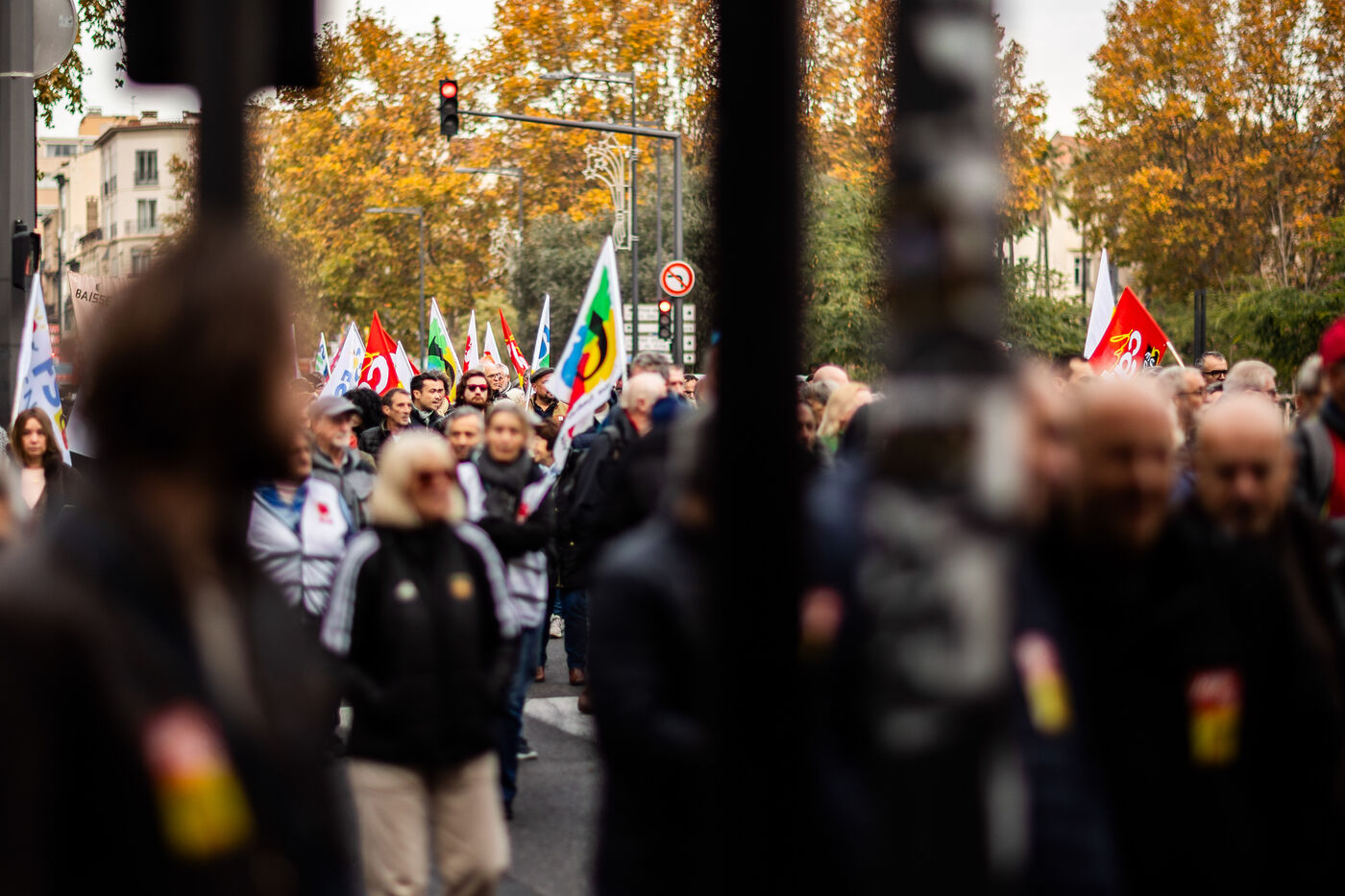 Perpignan, December 2, 2025, Inter-union demonstration called by the CGT against the government's budget and Social Security, notably with a warning about the changing working conditions of teachers and professors and the deterioration of the public transport sector.