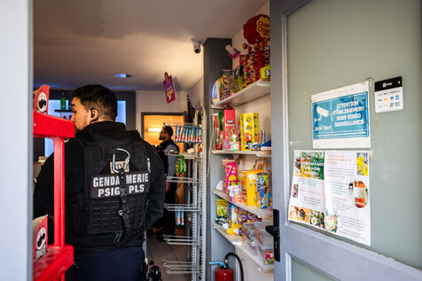 Ponteilla and Thuir, December 2, 2025, nighttime grocery store inspection operation by CODAF (Departmental Anti-Fraud Operational Committee) led by the Prefecture of the Pyrénées-Orientales and the Gendarmerie to combat drug trafficking, illegal employment, the sale of illicit products to minors, and public finance fraud.