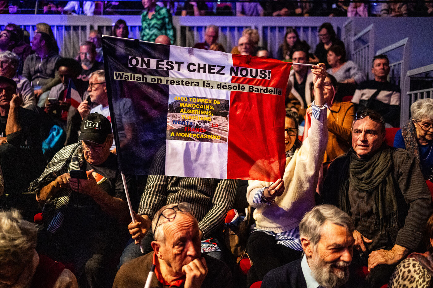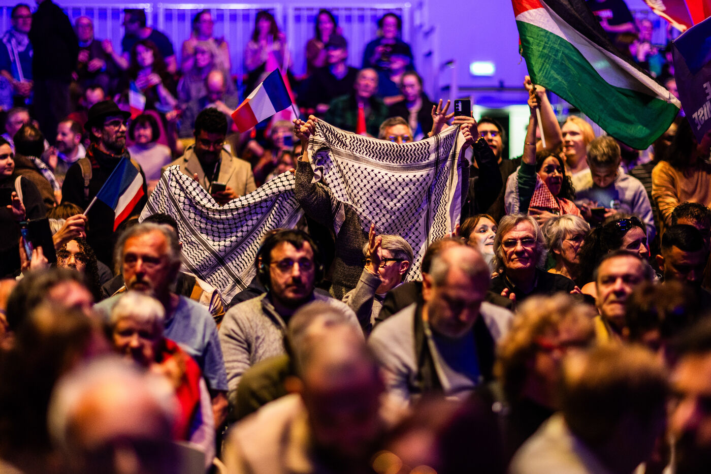 Perpignan, 1 mars 2026, déplacement et meeting de Jean-Luc Mélenchon, président de La France Insoumise, venu soutenir son candidat à la mairie de Perpignan, Mickael Idrac dans le cadre de sa campagne aux élections municipales de mars 2026.