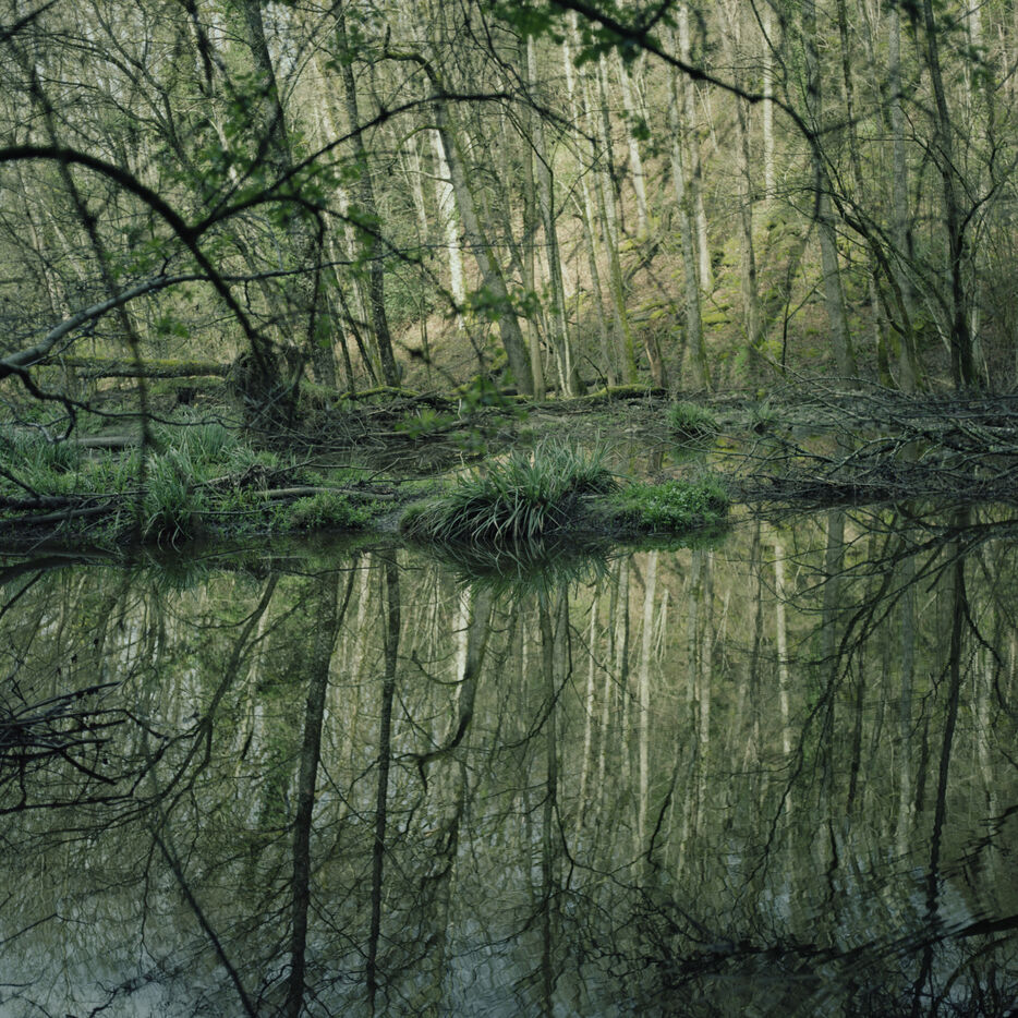 Cross the garden and climb over a fence. Go down through the tall grass to the end of the meadow. Enter the woods. This is where “L’Aval” begins. A few short kilometers across the forest pierced with clearings, a non-existent path. Alternating gentle and steep slopes. There is an abandoned hamlet there: five collapsed houses that ivy conscientiously devours. Go down until you catch sight of the river. A dam. A few more bends before you stop walking. Steps as if you were counting down time with your feet. So I counted them. Little by little. Steps as a unit of measurement on a map. The water that goes downstream and never comes back and the slow movement of the wind in the trees, a continuous learning of places. An exploration. Step by step.
