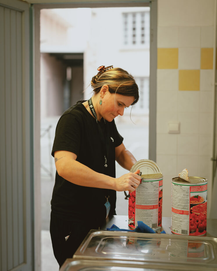 Behind the scenes of the volunteers' kitchen at the International Political Film Festival in Carcassonne.