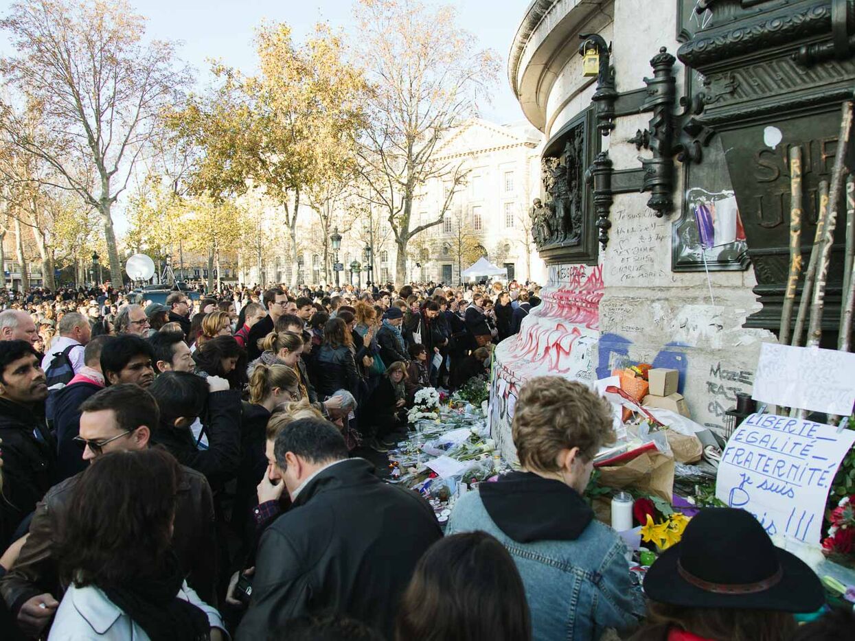Flowers everywhere, words, glances, tears, embraces, all united in the face of the violence that struck the heart of Paris. In the aftermath of the November 13, 2015 attacks, Parisians gathered in the streets of Paris and in front of the sites of the terrorist attacks to pay tribute to the victims.