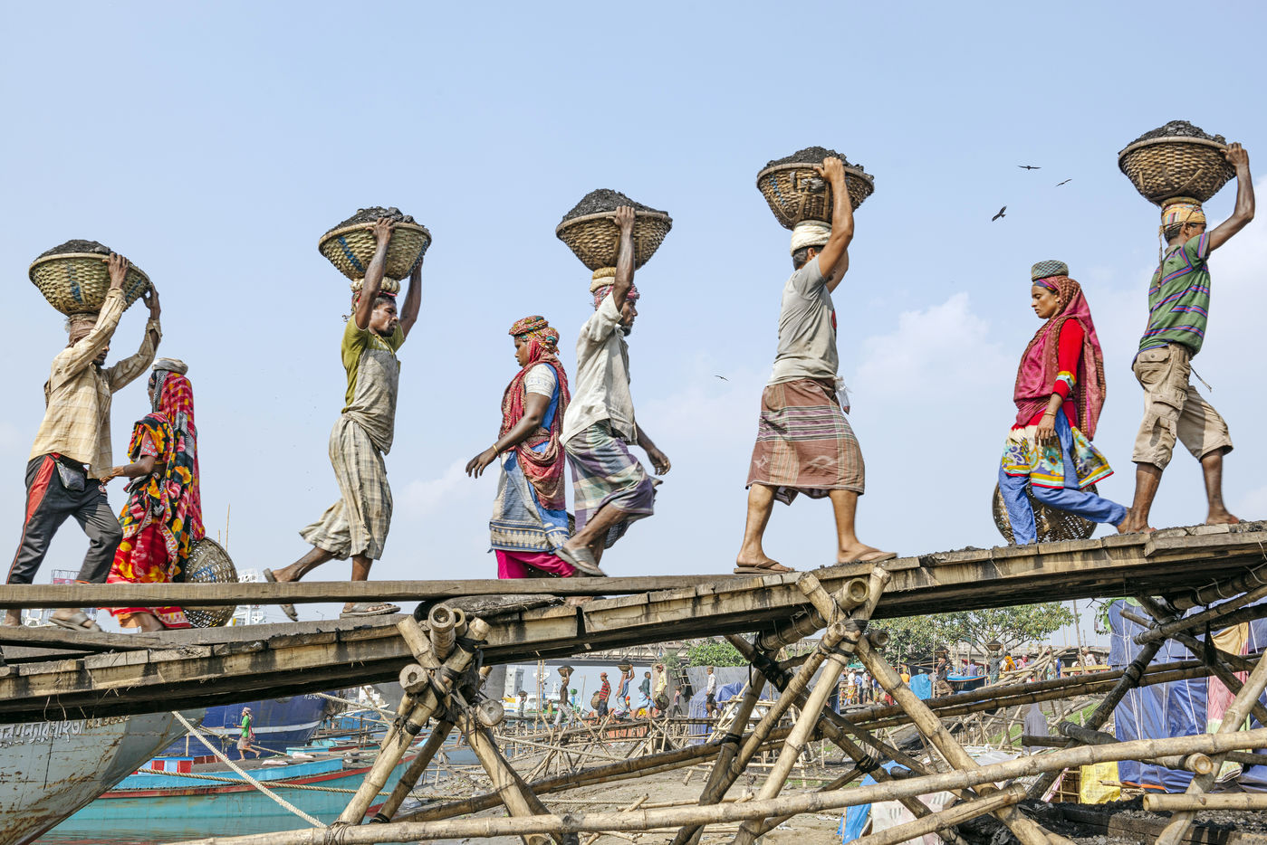 In the port of Gabtoli, on the outskirts of Dhaka, thousands of day labourers rip mountains of sand, gravel, cement, bricks and coal from the bellies of boats.