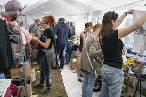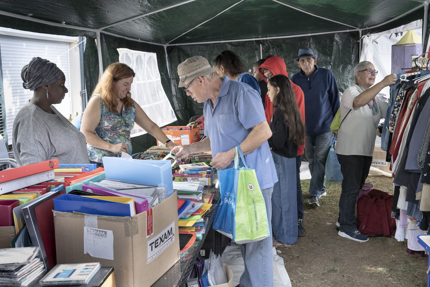 The "Les Coudes Serrés" association organizes a "gratiferia" in a neighborhood where many people are destitute.