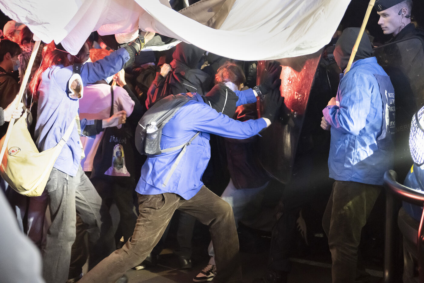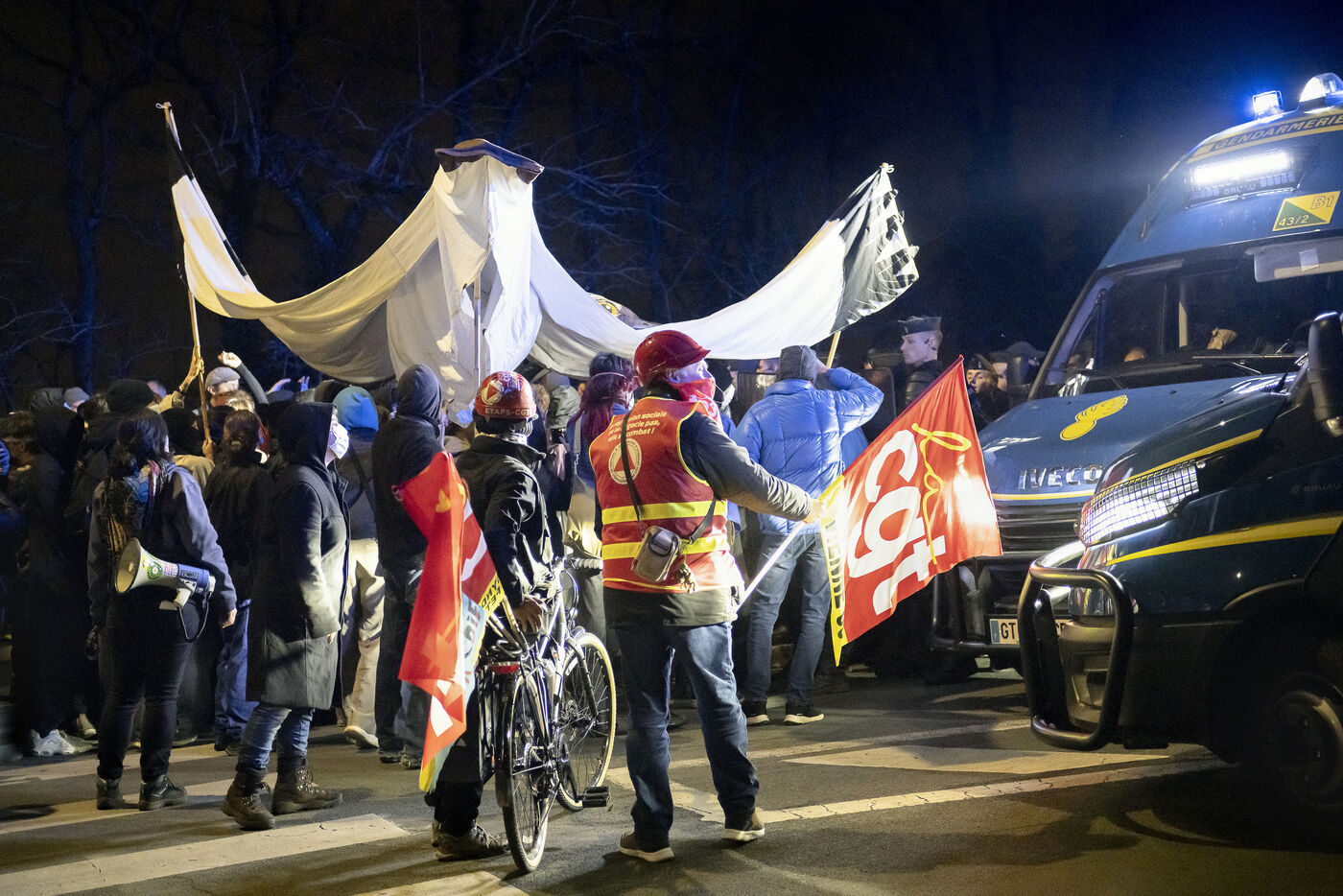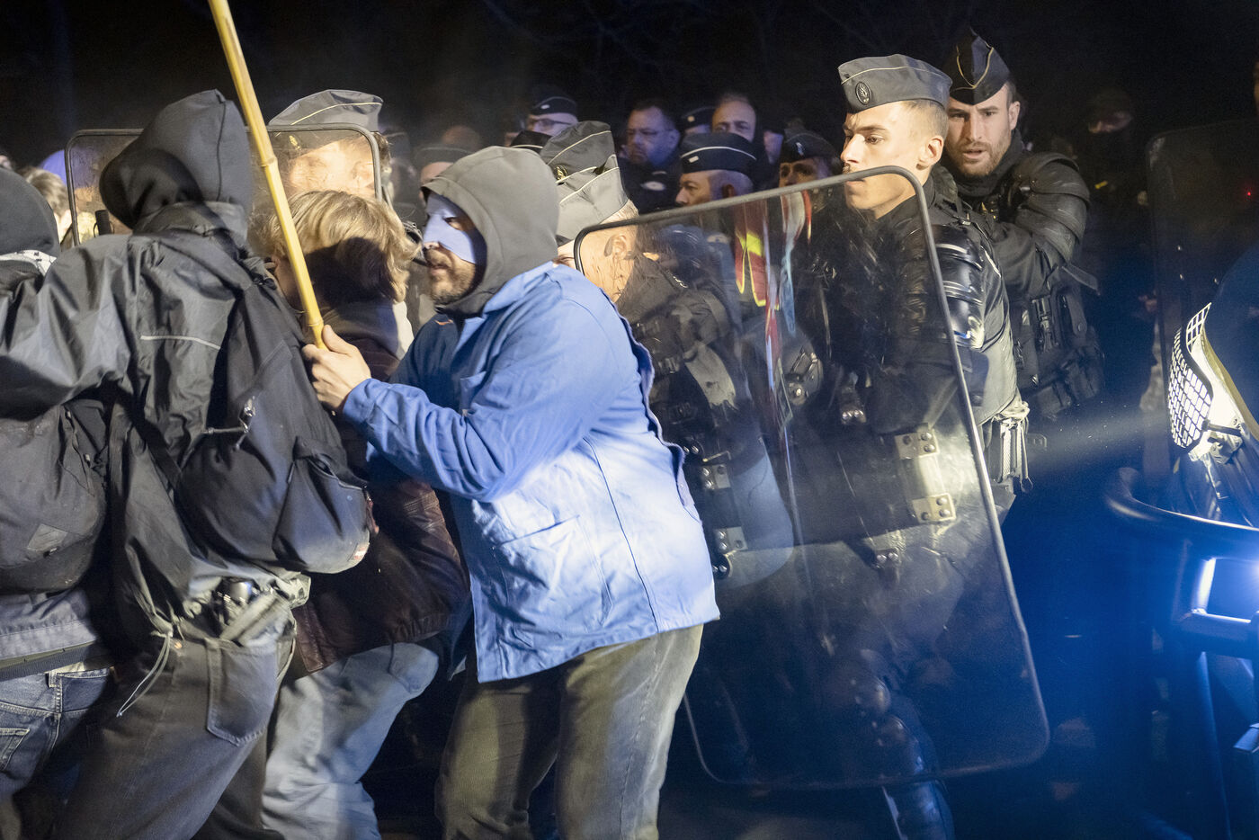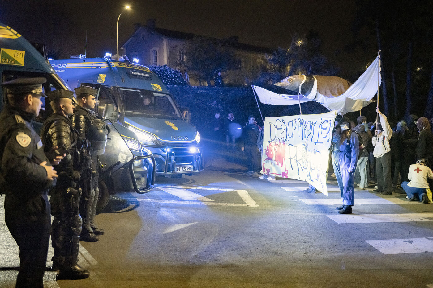 Environ 400 manifestants se sont réunis à Poitiers pour le deuxième anniversaire des affrontements de Sainte Soline ayant pour sujet les méga bassines, la gestion et le partage de la ressource en eau par l'agriculture. La manifestation qui se déroulait dans le calme s'est tendue à l'approche d'une caserne militaire protégée par d'importantes forces de l'ordre.