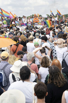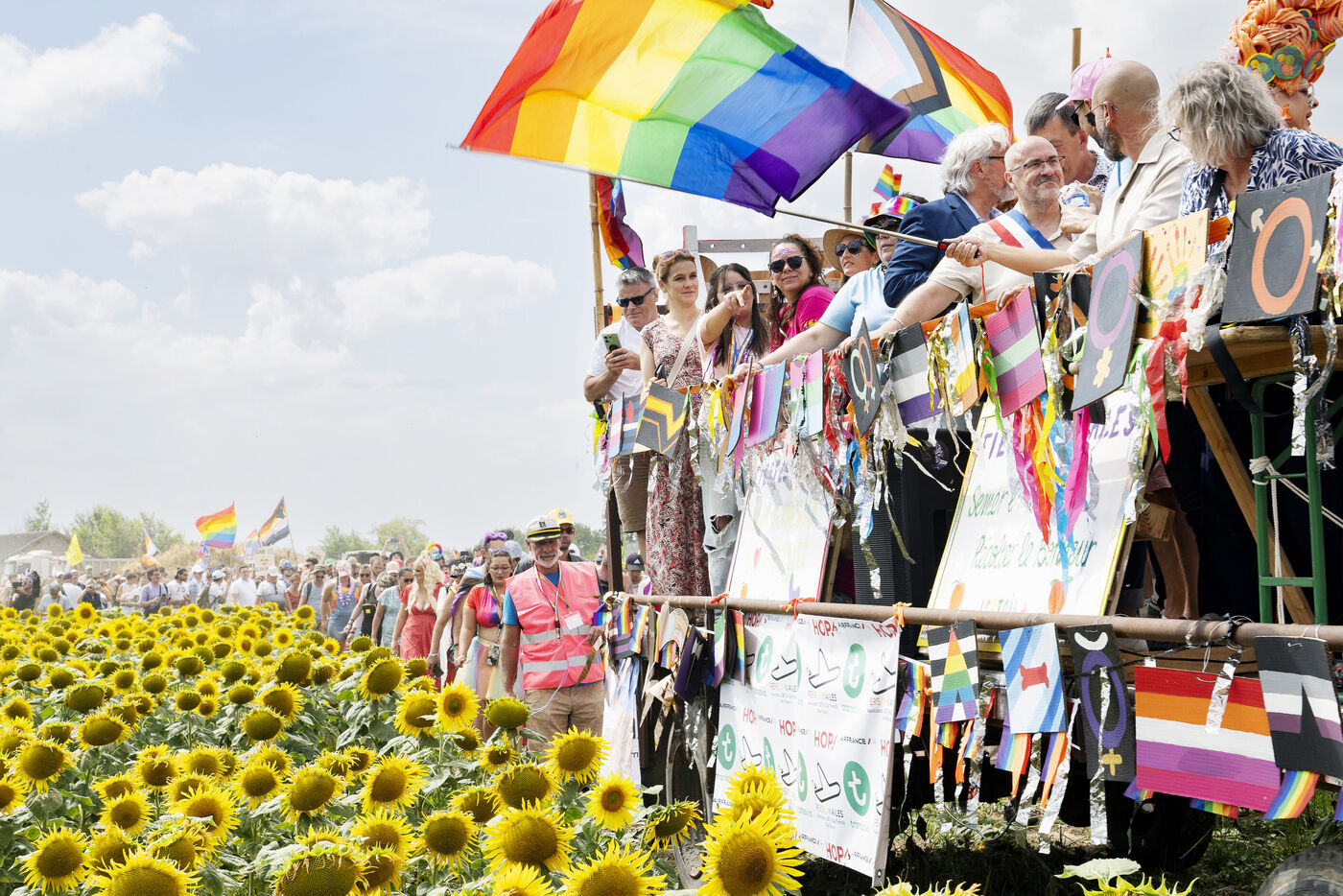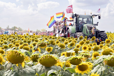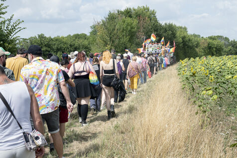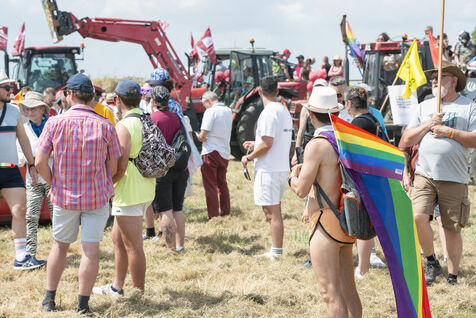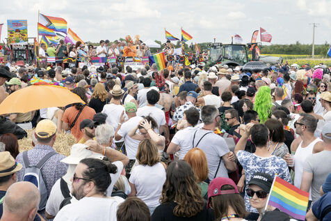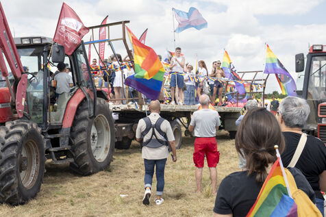 Des centaines de personnes venues de toute la France participent à l'évènement dans le but de promouvoir les droits, la visibilité et l'acceptation des personnes LGBTQIA et + en milieu rural.