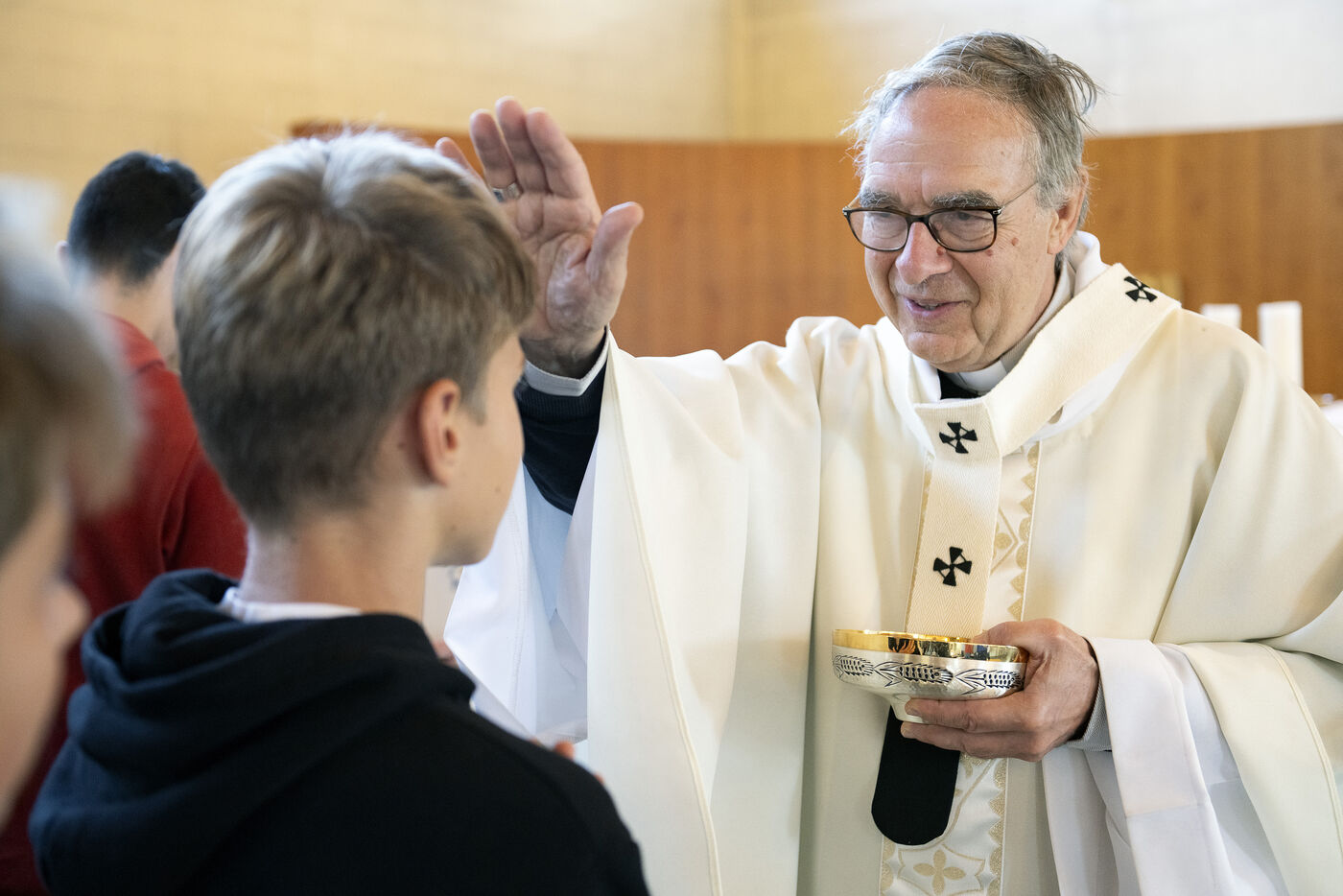 Illustrative images of the back-to-school mass at the Isaac de l'Etoile private Catholic school in Poitiers. This mass was exceptionally led by the Archbishop of Poitiers, Monsignor Jérôme Beau.