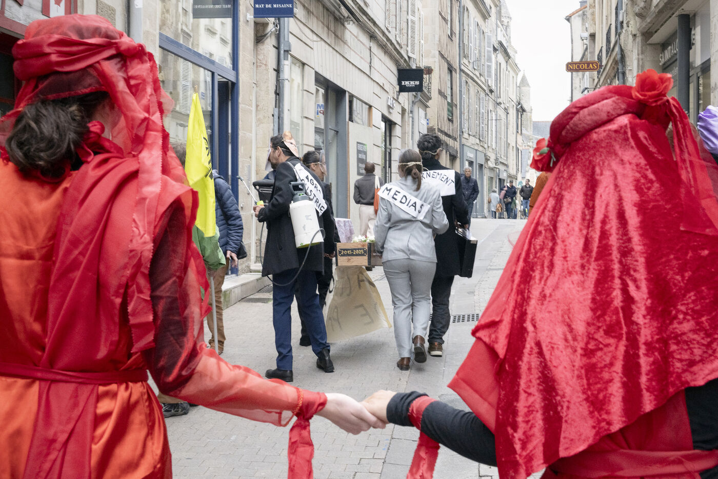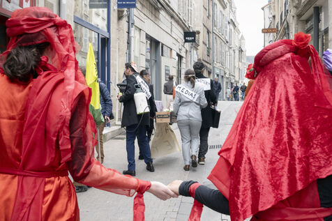 A group of Extinction Rebellion activists decided to symbolically bury the Paris Agreement by demonstrating in the streets of Poitiers with a coffin bearing a banner reading ‘Paris Agreement’.