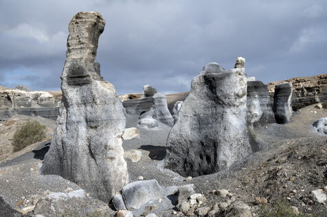 La lave et les cendres noires recouvrent le sol de l'ile et l'eau étant rare il a fallu beaucoup de génie pour survivre.