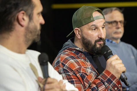 Edouard Bergeon présente son film "Rural" en avant première à Poitiers, pour cela il est venu avec le producteur Christophe Rossignon et Jérôme Bayle agriculteur charismatique, éleveur de bovins de race limousine dans le département de la Haute Garonne qui est le personnage central du film.