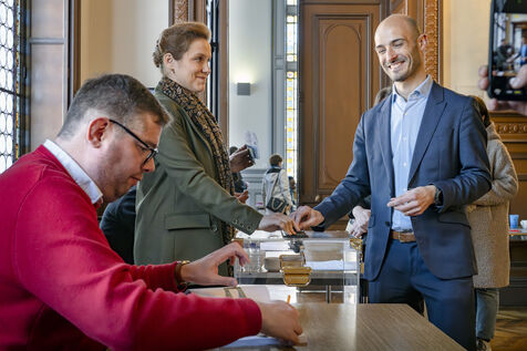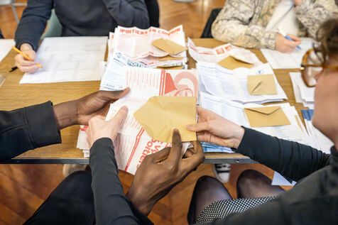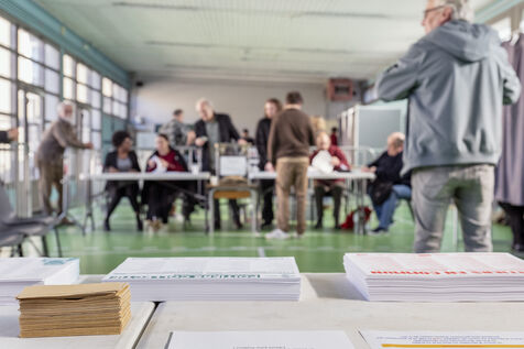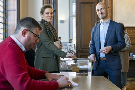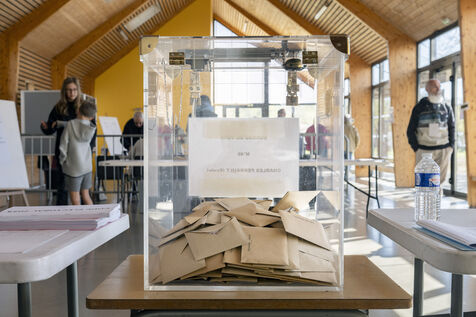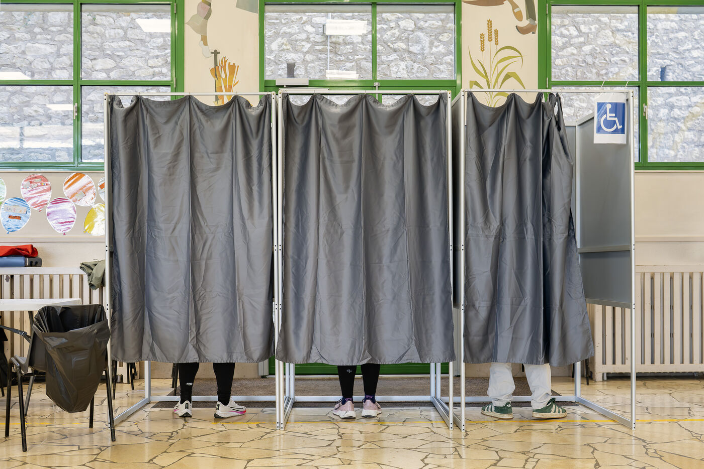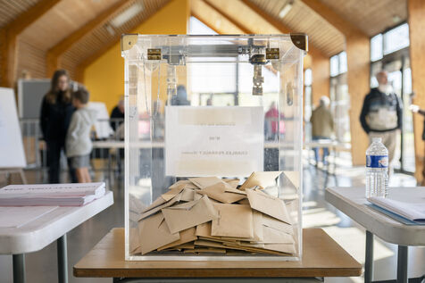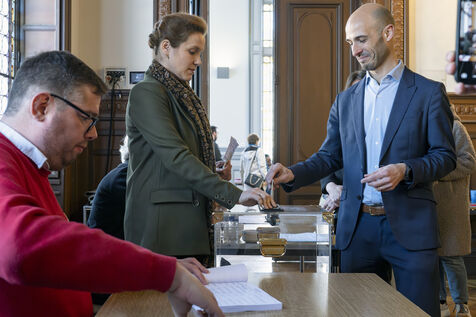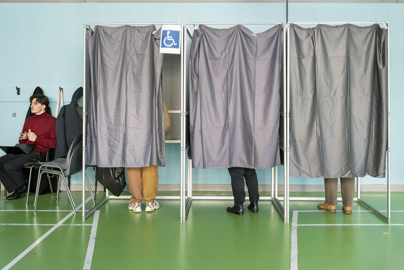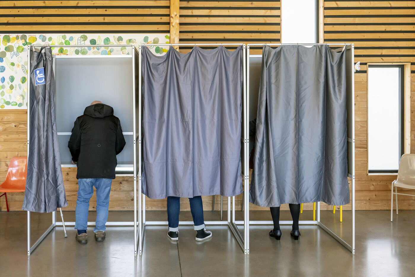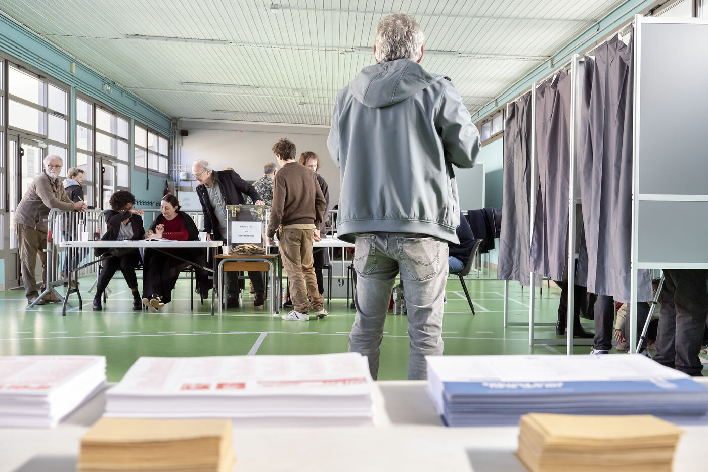 Images d'illustrations du premier tour des élections municipales 2026 dans plusieurs bureaux de votes de Poitiers, où la maire écologiste sortante Léonore Moncond'huy est candidate à sa réélection.