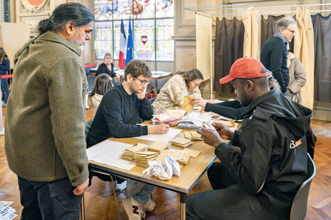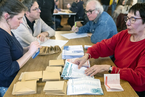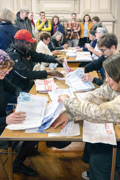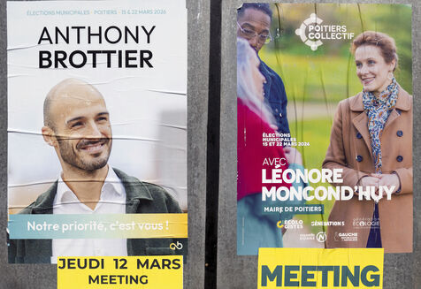 Illustrative images from the first round of the 2026 municipal elections at several polling stations in Poitiers, where the incumbent Green Party mayor, Léonore Moncond'huy, is running for re-election.