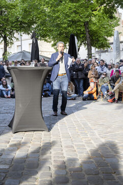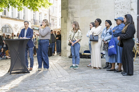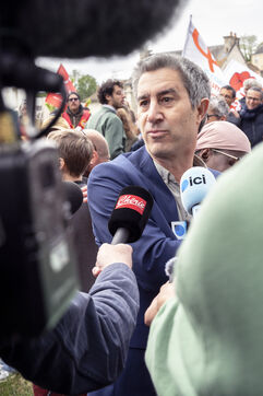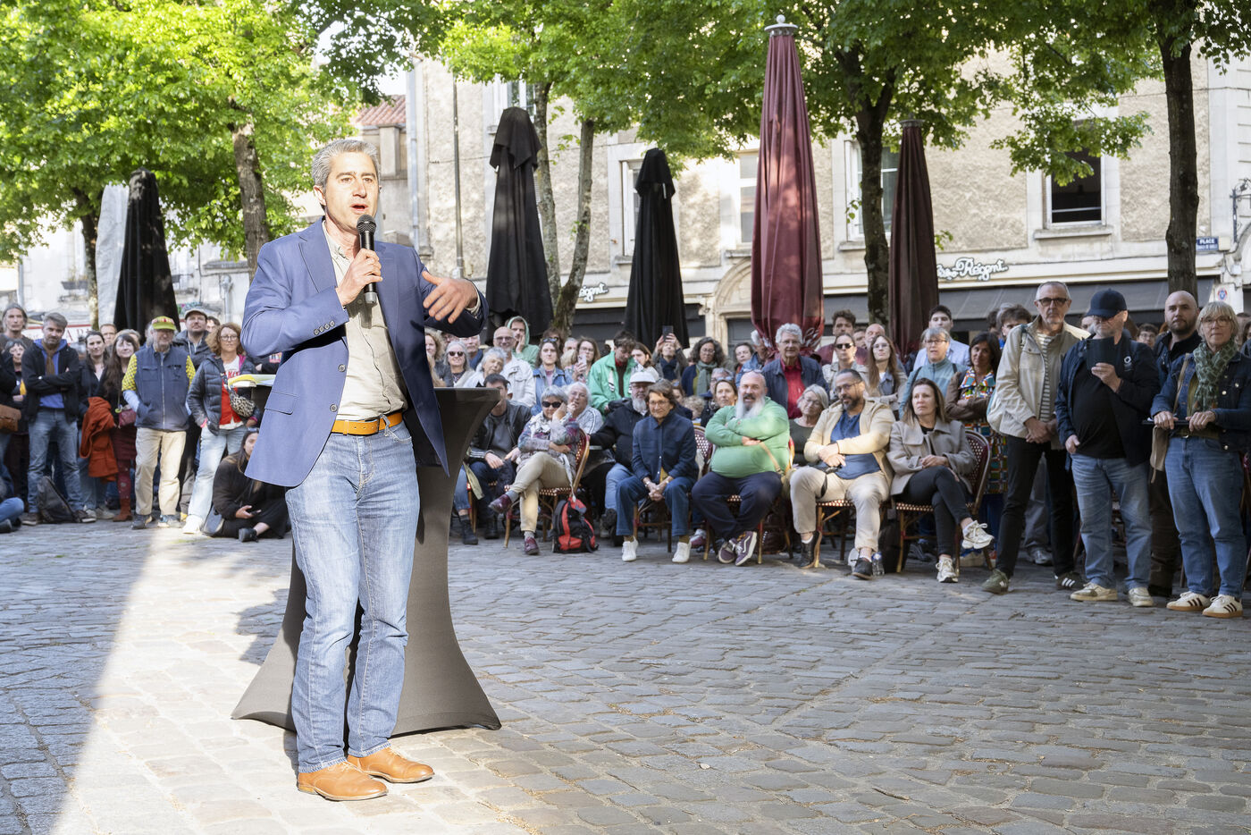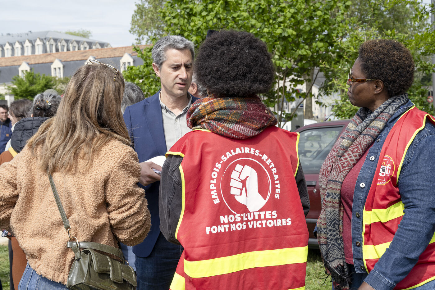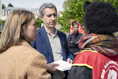 Le député François Ruffin est en visite à Poitiers pour apporter son soutien aux soignants grévistes des EHPAD du groupe privé Vivalto Vie.