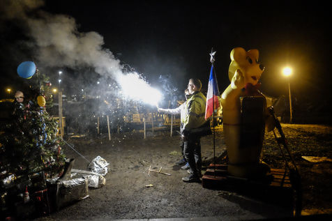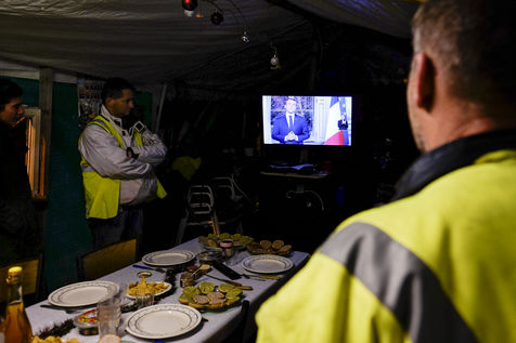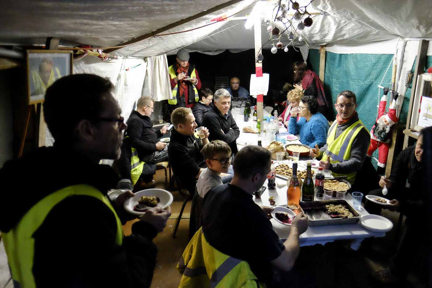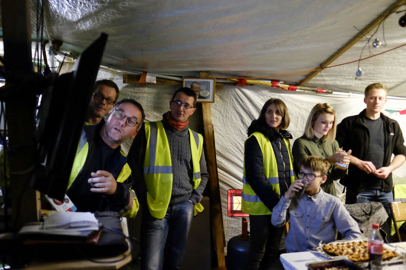 In the Montabon (Sarthe) camp, several people came to support the "Yellow Vests" movement. Together they listened to the speech of the President of the French Republic, Emmanuel Macron, that many of them found disappointing. Then they shared a meal to celebrate the transition to the year 2019. While clinking at the new year, the protesters encouraged each other to continue the fight: "On the roundabout, we do not break."